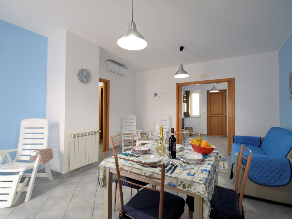 "Marina Blue", 4-Zimmer-Wohnung 88 m2, im Erdgeschoss. Renoviert im Jahre 2021, komfortabel und geschmackvoll eingerichtet: Wohnzimmer mit 1 Doppeldiwanbett und TV (Flachbildschirm), Ventilator. Grosses Wohn-/Esszimmer mit Klimaanlage. Ausgang zur Terrasse. 1 Zimmer mit 1 Doppelbett (140 cm), Ventilator. 1 Zimmer mit 1 Bett, 1 Ausziehbett und Ventilator. (4 Kochplatten, Backofen, Toaster, Wasserkocher, Mikrowelle, Tiefkühler). Bad/Bidet/WC. G-Heizung (extra), Klimaanlage (extra). Heizung nur verfügbar von 01.12. bis 31.03. Gartensitzplatz 15 m2, teilweise überdacht. Terrassenmöbel. Zur Verfügung: Waschmaschine, Bügeleisen, Kinderhochstuhl, Babybett bis 2 Jahre (extra), Haartrockner. Internet (Wireless LAN, gratis).