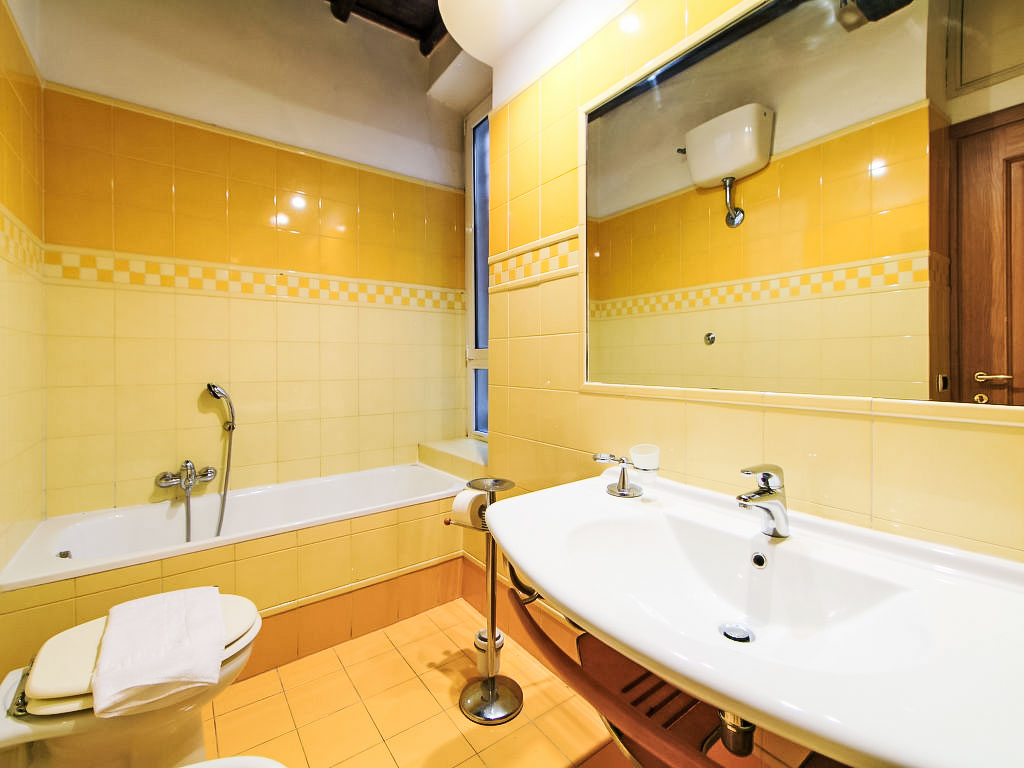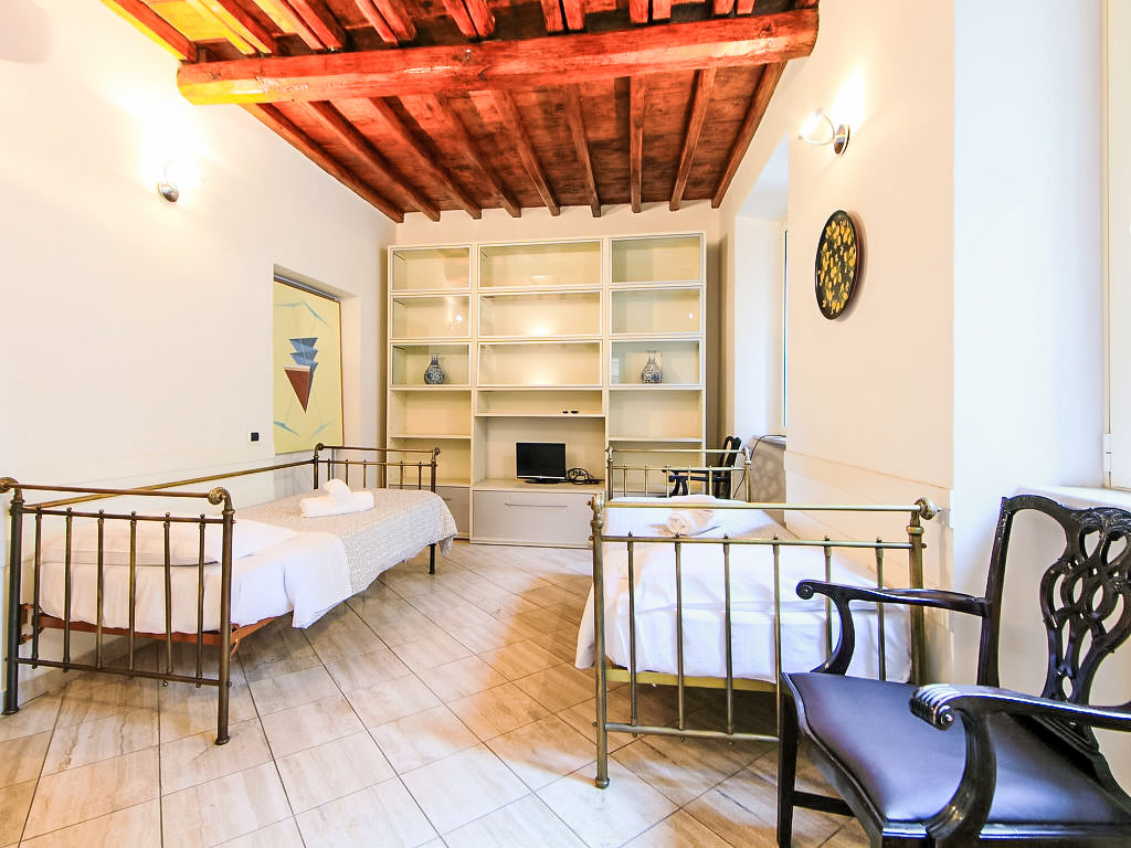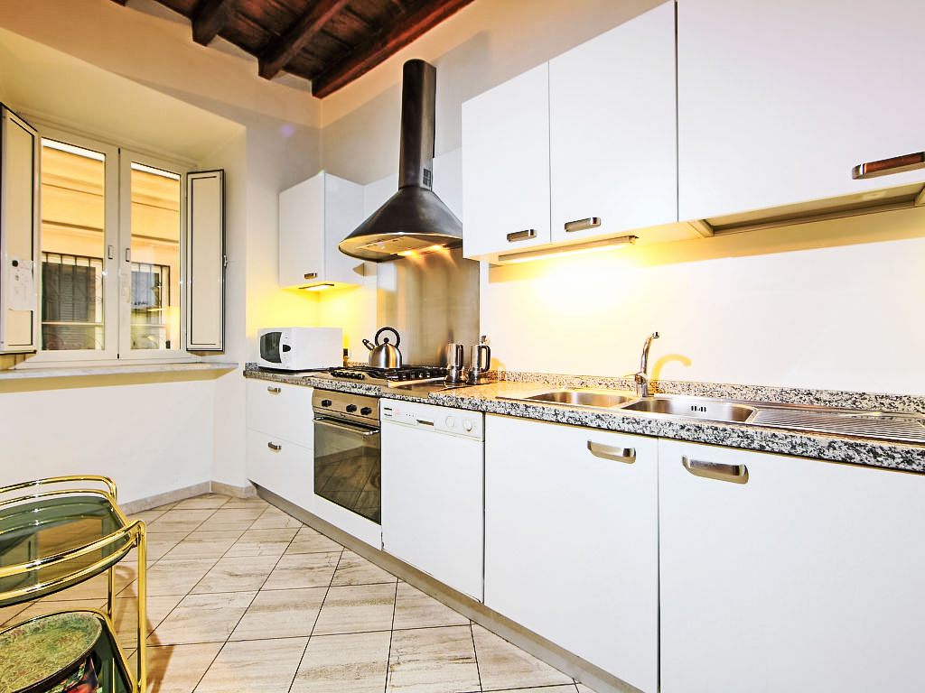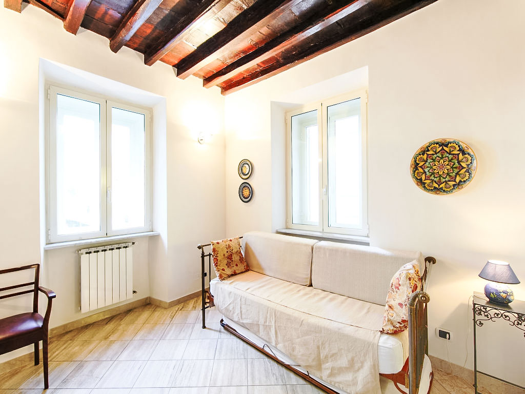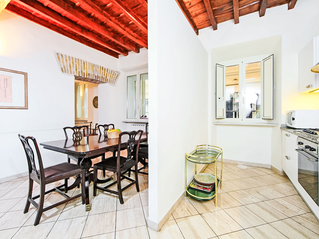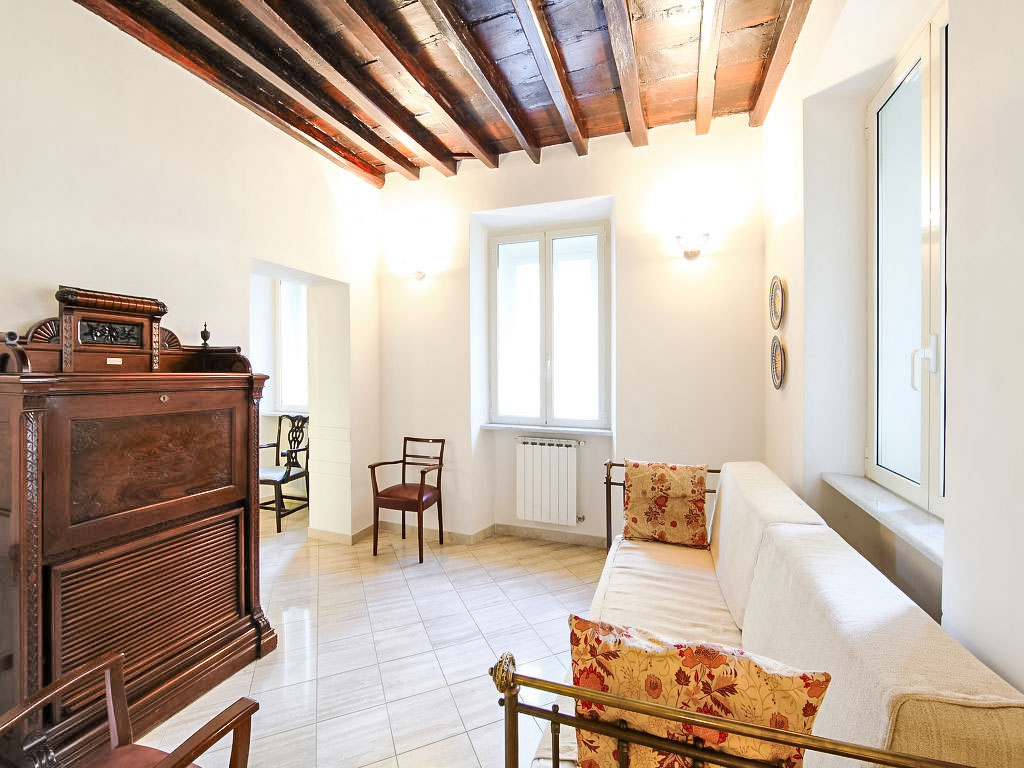 Historisches Appartementhaus "Vittorio Emanuele", aus dem 17. Jahrhundert. Im Ortszentrum von Roma, im Bezirk Piazza Navona, zentrale, belebte Lage, im Herzen der Stadt, an einer Hauptstrasse. Im Hause: Fahrstuhl. Öffentliches Parkhaus in 500 m, extra. Straßenbahn "Number 8 Arenula-Cairoli" 800 m, Bushaltestelle "Chiesa Nuova" 70 m, Bahnstation "Termini" 3.5 km, U-Bahnstation "Colosseo" 2.8 km. Nahe gelegene Sehenswürdigkeiten: Piazza Navona 270 m, Campo dei Fiori 350 m, San Luigi dei Francesi 600 m, Piazza San Pietro 1.2 km, Trastevere 900 m. Die Wohnung befindet sich in einer für den Verkehr begrenzt zugänglichen Zone (ZTL).