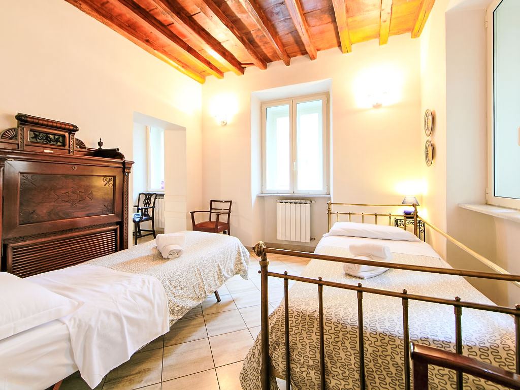 5-Zimmer-Wohnung 120 m2 im 1. Stock. Vollständig renoviert, sehr komfortabel und stilvoll eingerichtet: Wohnzimmer mit 2 Diwanbetten, Digital-TV und Flachbildschirm. Durchgangszimmer mit 1 Ausziehbett (2 Pers.). 1 Doppelzimmer. 1 Zimmer mit 2 Betten. Esszimmer mit Esstisch. Küche (5 Kochplatten, Backofen, Geschirrspüler, Mikrowelle, Tiefkühler). Bad/Bidet/WC, Dusche/Bidet/WC. Heizung, Klimaanlage (extra). Heizung nur verfügbar von 01.11. bis 15.04. Sicht auf die Stadt. Zur Verfügung: Waschmaschine, Wäschetrockner, Safe, Haartrockner. Internet (Wireless LAN, gratis). Grosser Kleiderschrank. Bei einer Ankunft nach 20 Uhr wird ein Aufpreis erhoben 30-50 Euro. Zur Verfügung: elektrische Kaffeemaschine, Toaster, Haartrockner. Bitte beachten: Die beiden Wohnzimmer sind voneinander getrennt beziehungsweise durch einen Bogen miteinander verbunden.