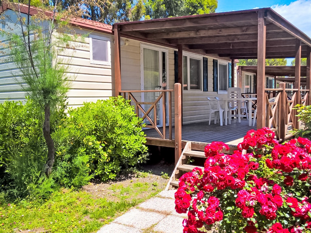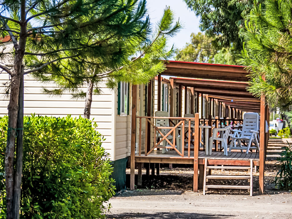 3-Zimmer-Mobilheim 24 m2, im erhöhten Erdgeschoss. Zweckmässig eingerichtet: Wohn-/Esszimmer mit Küchenblock. Ausgang zum Gartensitzplatz. 1 Doppelzimmer. 1 Zimmer mit 2 Betten und 1 Wandklappbett. Dusche, sep. WC. E-Heizung, Klimaanlage. Gartensitzplatz überdacht. Sitzplatz. Zur Verfügung: Safe. 1 Haustier/Hund erlaubt.