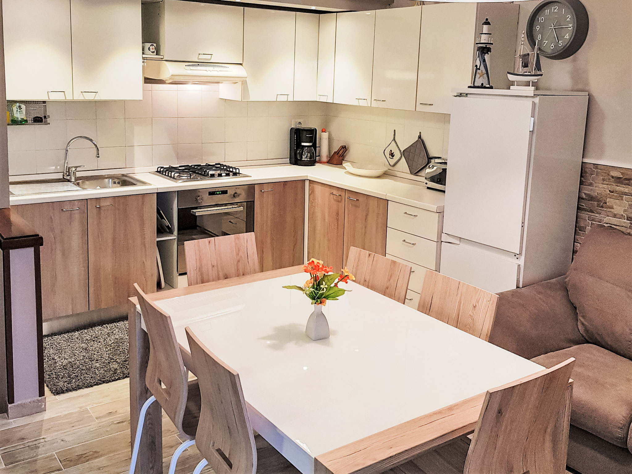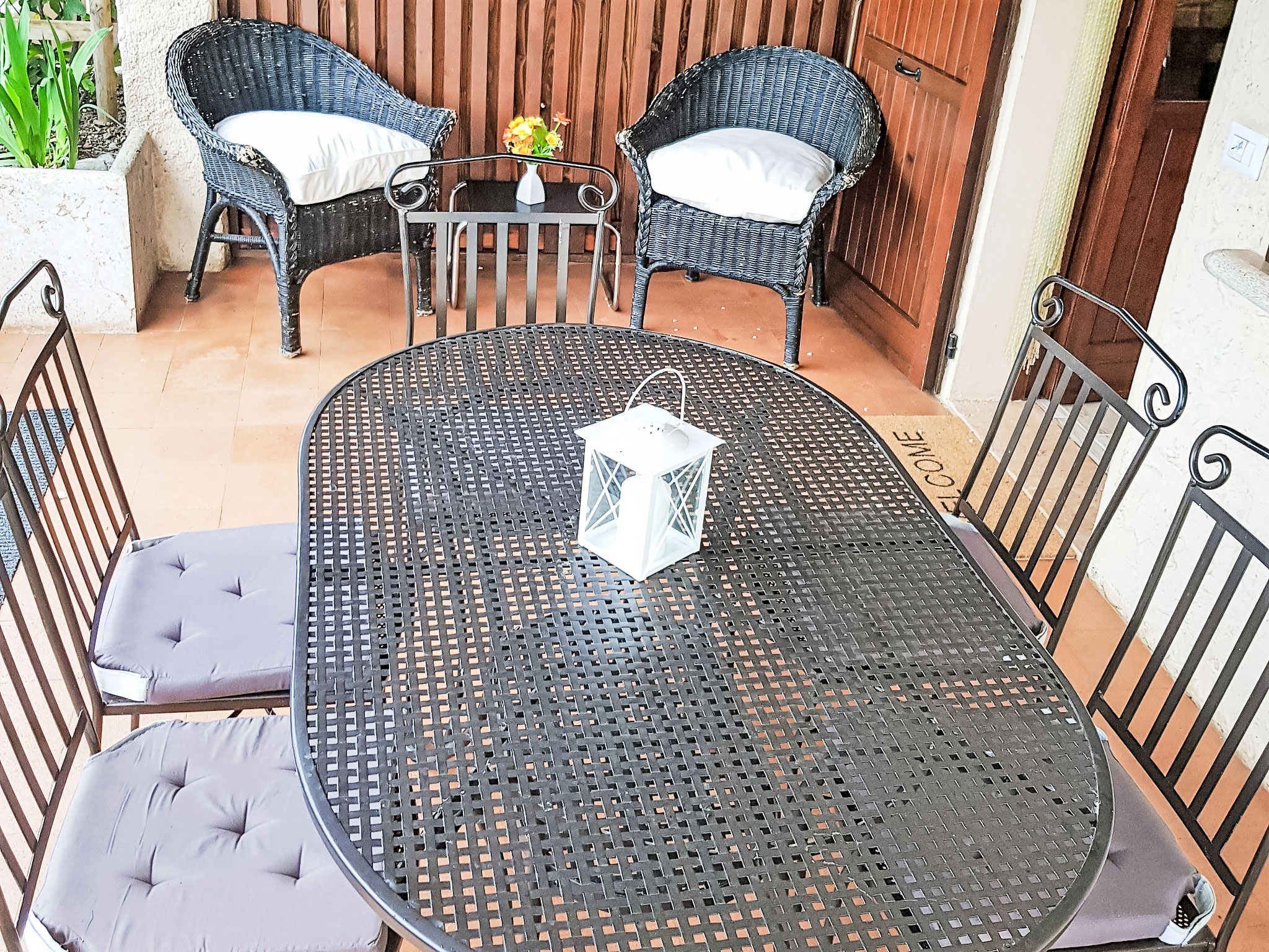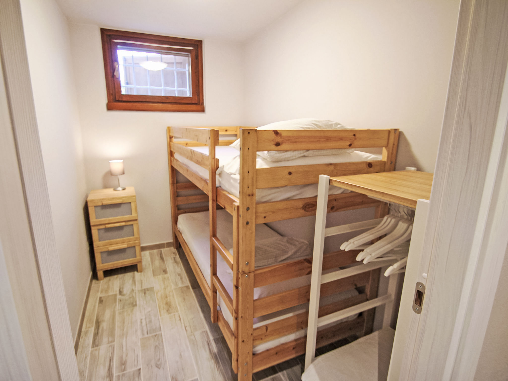 3-Zimmer-Reihenhaus 55 m2 auf 2 Stockwerken. Teilweise renoviert im Jahre 2018, zweckmässig eingerichtet: Wohn-/Esszimmer mit offenem Kamin und TV. Ausgang zum Gartensitzplatz. Offene Galerie mit 1 Doppelbett. Kochnische (4 Kochplatten, Backofen, Tiefkühler, elektrische Kaffeemaschine). Unteres Geschoss: 2 kleine Zimmer, jedes Zimmer mit 1 x 2 Etagenbetten. Dusche/Bidet/WC. Gartensitzplatz 15 m2, überdacht, Garten 60 m2. Terrassenmöbel. Zur Verfügung: Fliegengitter. Geeignet für Familien. 1 Haustier/Hund erlaubt. CIR: 017151-CNI-00004