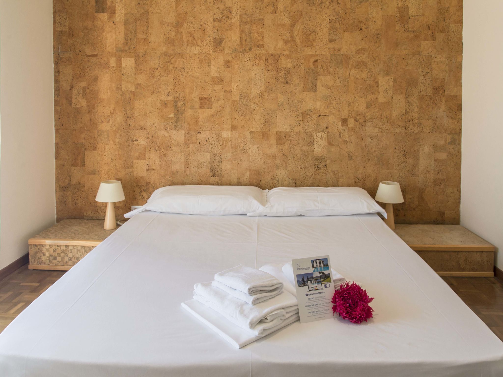 "Monica (RDG140)", 3-Zimmer-Wohnung 45 m2, im Obergeschoss. Zweckmässig eingerichtet: Wohn-/Esszimmer mit Esstisch und Sat-TV. Ausgang zum Balkon. 1 Doppelzimmer. 1 Zimmer mit 1 x 2 Etagenbetten. Kochnische (4 Induktionskochplatten, Wasserkocher, Mikrowelle, elektrische Kaffeemaschine). Dusche/Bidet/WC. G-Heizung. Parkettböden. Balkon. Balkonmöbel. Zur Verfügung: Babybett bis 3 Jahre. Internet (Wireless LAN, gratis).