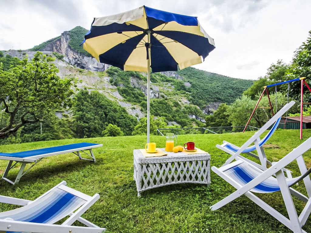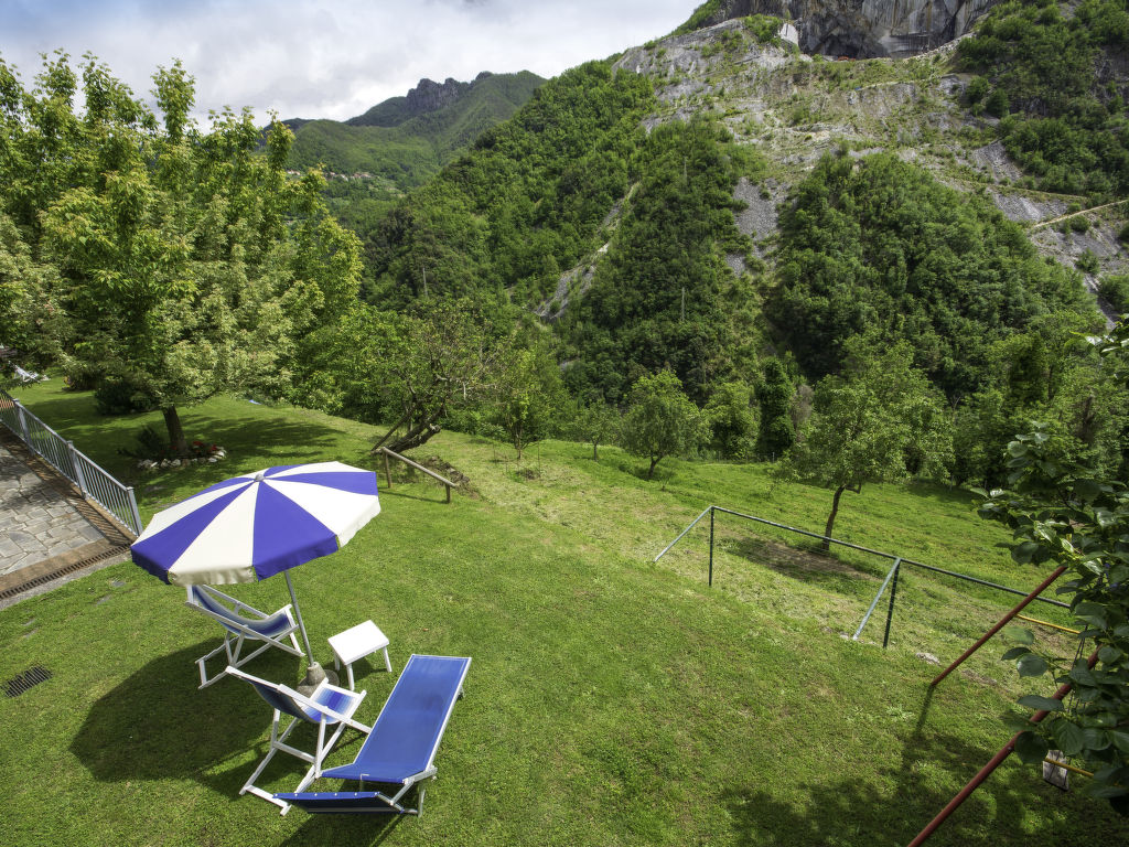 Seravezza: Gemütliches, rustikales, alleinstehendes Einfamilienhaus "L'Aia", auf 2 Stockwerken. 2 Häuser in der Residenz. 1 km vom Zentrum von Seravezza, ruhige, sonnige Lage am Hang, 50 m vom Waldrand, 9 km vom Meer, in einer Sackgasse, im Grünen. Zur Alleinbenutzung: Garten 50 m2 mit Rasen und Pflanzen, Schwimmbad (4 x 3 m, 140 cm tief, 19.05.-07.10.). Aussendusche, Pergola, Terrasse, Gartenmöbel, Grill. In der Anlage: Sauna (extra). Sprudelbad, Waschmaschine (zur Mitbenutzung). Wäschewechsel (zusätzlich extra). Handtuchwechsel (zusätzlich extra). Steile, schmale Zufahrt bis zum Haus. Parkplatz beim Haus auf dem Grundstück. Lebensmittelgeschäft 1 km, Supermarkt 1 km, Restaurant 1 km, Sandstrand "Forte dei Marmi" 11 km. Golfplatz (18 Loch) 12 km, Wanderwege ab Haus 30 m. Nahe gelegene Sehenswürdigkeiten: Pietrasanta 5 km, Forte dei Marmi 10 km, Lucca 32 km, Pisa 40 km. Bitte beachten: Fahrzeug empfohlen. Ferienwohnung Ref. IT5167.151.1 befindet sich auf dem gleichen Grundstück.