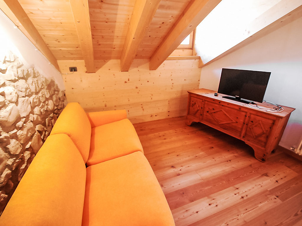 3-Zimmer-Wohnung 48 m2 auf 2 Stockwerken im 2. Stock. Geräumig und hell, teilweise abgeschrägt, vollständig renoviert im Jahre 2012, komfortabel und mit viel Holz eingerichtet: Wohn-/Esszimmer mit Esstisch. Kochnische (Mini-Backofen, 2 Glaskeramikherd Platten, Wasserkocher). Sep. WC. Obergeschoss: offenes Wohn-/Schlafzimmer abgeschrägtes mit 1 Doppeldiwanbett und Sat-TV (Flachbildschirm), DVD. 1 Zimmer mit 1 franz. Bett. Dusche/Bidet/WC. Heizung. Holzböden. Schöne Sicht auf den See, die Berge und das Tal. Zur Verfügung: Internet (Wireless LAN, gratis). Bitte beachten: Kühlschrank ohne Gefrierfach, Nichtraucher-Unterkunft.