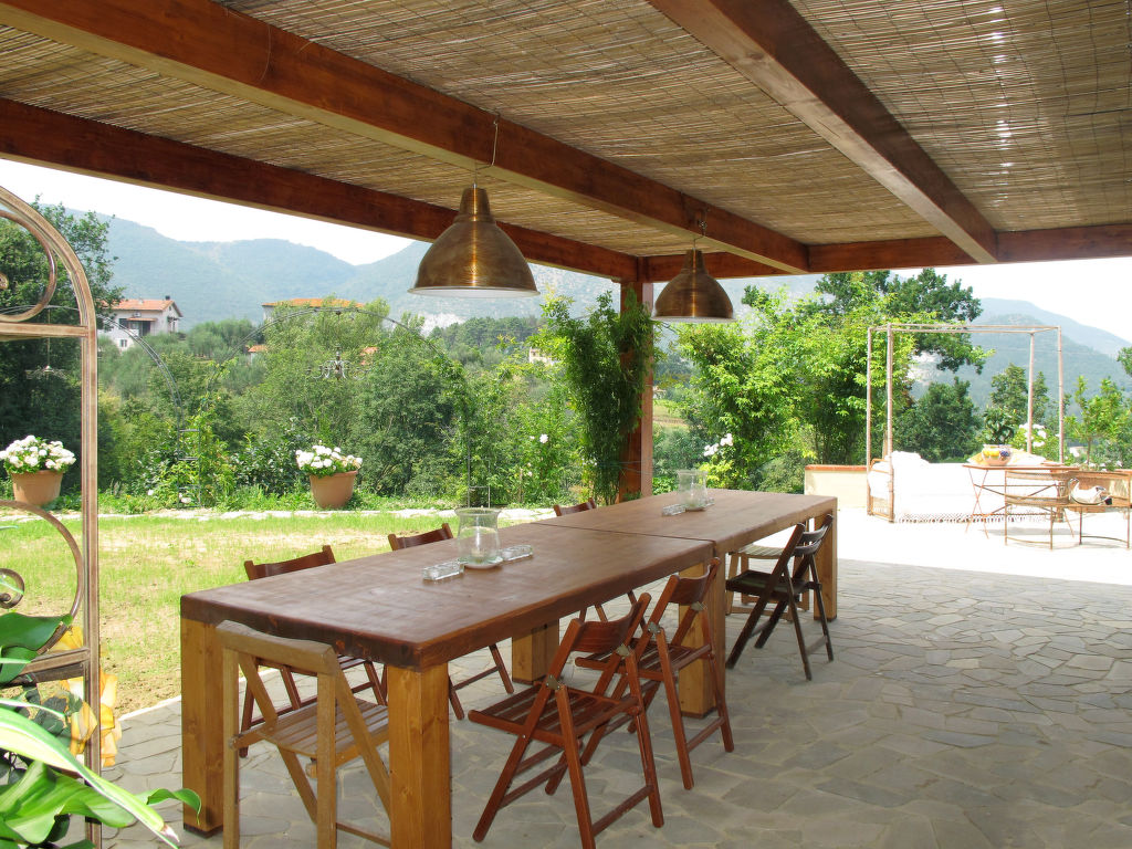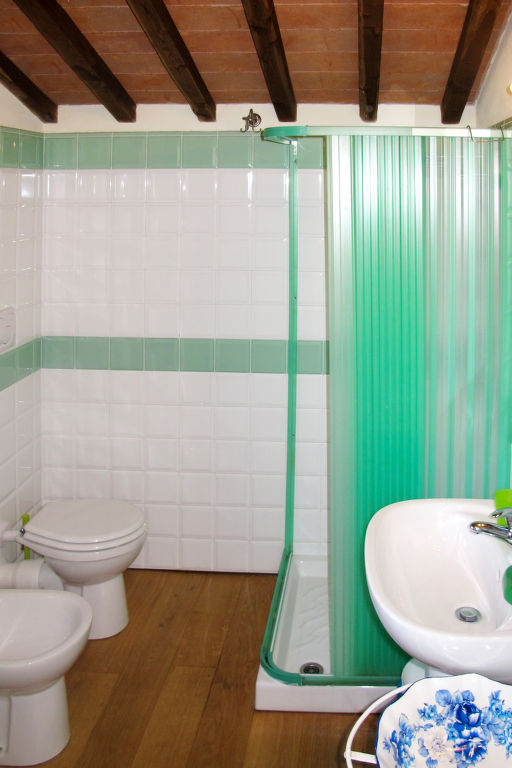 Santa Maria d. Giudice: Gemütliches Einfamilienhaus "Acquarella", umgeben von Bäumen. 700 m vom Zentrum von Santa Maria del Giudice, am Ortsrand, 9 km vom Zentrum von Lucca, 12 km vom Zentrum von Pisa, am Hang, 22 km vom Meer, im Grünen. Zur Alleinbenutzung: Grundstück 10'000 m2 mit Pflanzen und Bäumen, Naturgarten, Wiese. Tischtennis, Boccia, Laube, Terrasse (180 m2), Gartenmöbel. Im Hause: Sprudelbad. 200 m lange schmale Zufahrt (Naturweg). Parkplatz auf dem Grundstück. Einkaufsgeschäft 0.7 km, Bushaltestelle 0.7 km, Sandstrand "Tirrenia" 22 km. Golfplatz 23 km.