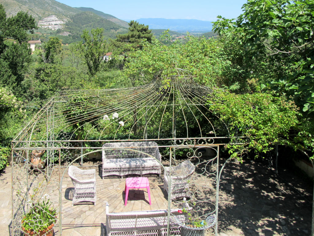 5-Zimmer-Haus 150 m2 auf 2 Stockwerken. Antik und gemütlich eingerichtet: Wohnzimmer mit Sat-TV, Flachbildschirm, Stereoanlage und DVD. Ausgang zur Terrasse. Esszimmer mit offenem Kamin und Esstisch. Ausgang zur Terrasse. Offene Küche (Backofen, Geschirrspüler, 5 Flammen, Mikrowelle, Tiefkühler, elektrische Kaffeemaschine). Dusche/WC. Obergeschoss: 1 Zimmer mit 1 Doppelbett und Dusche/WC. 1 Zimmer mit 1 franz. Bett (140 cm). 1 Zimmer mit 1 Doppelbett. Bad/WC. G-Heizung. Terrasse 30 m2, überdacht, grosse Terrasse 100 m2. Terrassenmöbel, Liegestühle. Schöne Panoramasicht auf die Berge und das Tal. Zur Verfügung: Waschmaschine, Bügeleisen, Kinderhochstuhl, Babybett, Haartrockner. Internet (Wireless LAN, extra). Bitte beachten: Nichtraucher-Unterkunft.