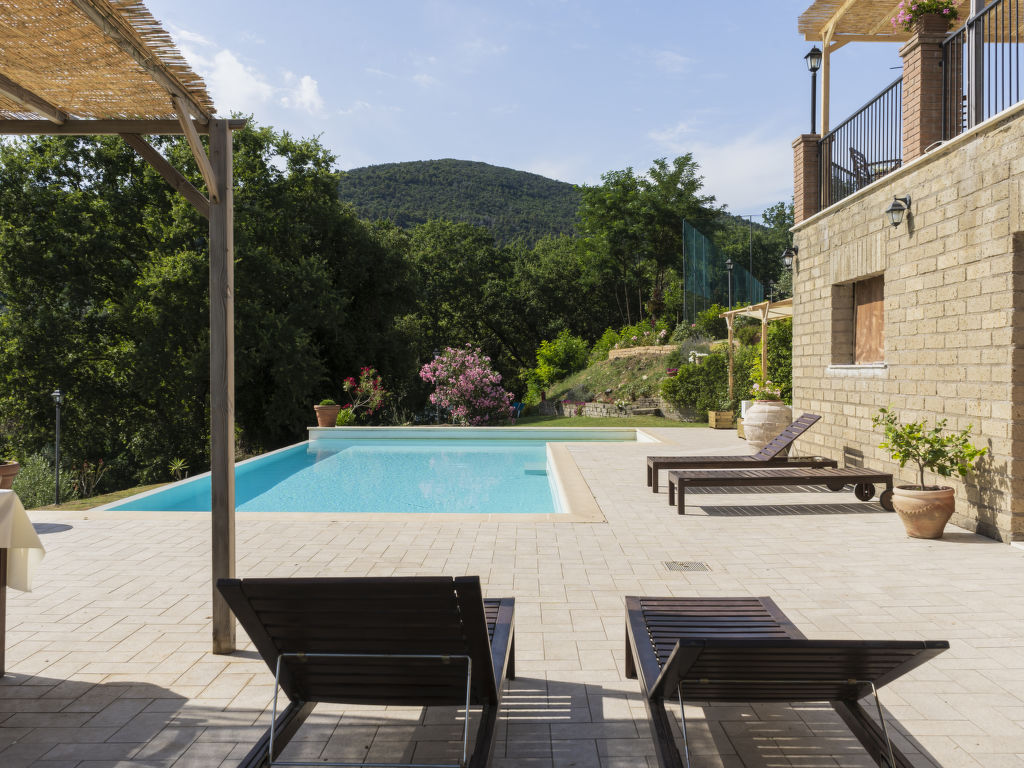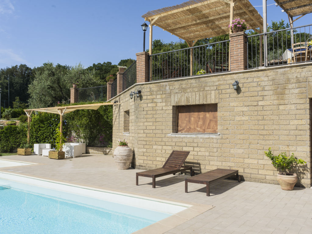 Schönes Landhaus "Casale della Croce". 8 km vom Zentrum von Torri in Sabina, 35 km vom Zentrum von Rieti, 70 km vom Zentrum von Roma, 60 km vom See. Zur Mitbenutzung: Tennis. Zur Alleinbenutzung: Grundstück, Terrassengarten mit Rasen und Bäumen, Schwimmbad (12 x 5 m, 120 - 140 cm tief, 01.01.-31.12.). Kinderbecken, Tennis, Sitzplatz, Gartenmöbel, Grill. Frühstück und Halbpension möglich auf Anfrage (extra). Parkplatz auf dem Grundstück. Einkaufsgeschäft 2 km, Supermarkt 6 km, Bahnstation "Stimigliano" 11 km. Ab Hof Verkauf von bäuerlichen Produkten.