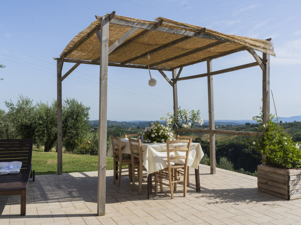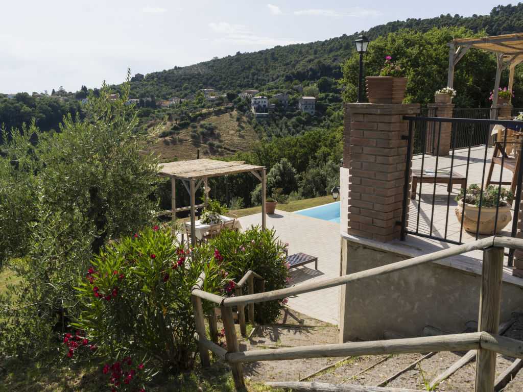 "Casale della Croce", 7-Zimmer-Haus 150 m2 auf 3 Stockwerken. Schön und rustikal eingerichtet: Wohnzimmer mit Esstisch, TV und Flachbildschirm. Ausgang zum Garten. Wohnzimmer mit offenem Kamin. Ausgang zum Garten. Küche (6 Flammen, Toaster, Wasserkocher, Tiefkühler, elektrische Kaffeemaschine). Ausgang zum Garten. Sep. WC. Obergeschoss: 1 Zimmer mit 2 Betten. Ausgang zum Garten. Dusche/WC. 2. Obergeschoss: Wohn-/Esszimmer mit 1 Doppeldiwanbett, offenem Kamin und Küchenblock. Ausgang zum Garten. 3 Doppelzimmer, jedes Zimmer mit Dusche/Bidet/WC. Heizung, G-Heizung, Klimaanlage. Schöne Panoramasicht auf das Tal. Zur Verfügung: Kinderhochstuhl, Babybett. Gratis. Maximal 2 Haustiere/Hunde erlaubt.