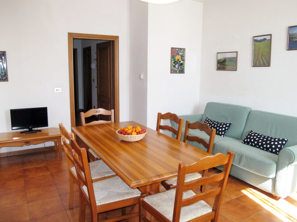 "San Vivaldo, Nr. 3", 3-Zimmer-Wohnung 65 m2, im Erdgeschoss. Zweckmässig und rustikal eingerichtet: Wohn-/Schlafzimmer mit 1 Doppeldiwanbett, Esstisch und Sat-TV. 1 Zimmer mit 1 Doppelbett. Ausgang zur Terrasse. 1 Zimmer mit 2 Betten. Kleine, offene Küche (Backofen, Geschirrspüler, 4 Flammen, Toaster, Wasserkocher, elektrische Kaffeemaschine). Dusche/Bidet/WC. Keine Heizmöglichkeit. Zur Verfügung: Kinderhochstuhl, Babybett. Bitte beachten: Nichtraucher-Unterkunft. Maximal 2 Haustiere/Hunde erlaubt. Eigener Eingang.