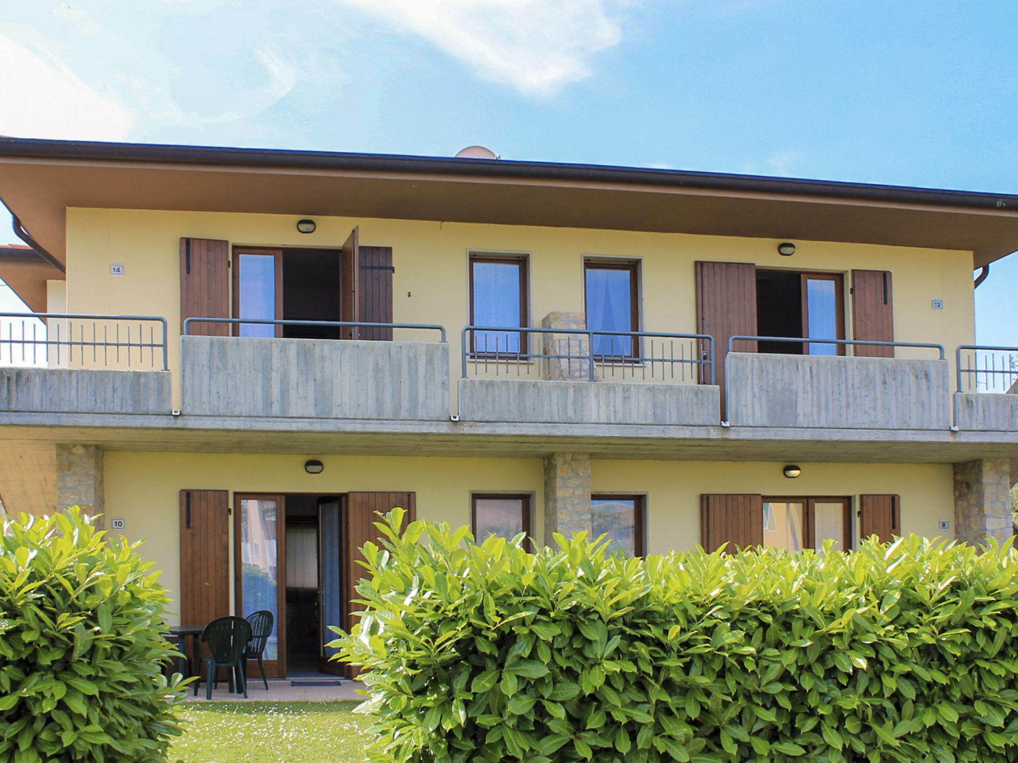 Die kleine Residenz CORTE CHIARA steht ca. 120 m oberhalb der Gardesana-Straße, im Wohnviertel Paiari. Ortsmitte Lazise mit Einkaufsmöglichkeiten 1 km. Zum See und Strand 1 km. Pro Wohnung 1 PKW-Stellplatz in der Anlage. Den Gästen steht der Pool einer Ferienanlage in ca. 50 m Entfernung zur Verfügung (L-förmig, ca. 40 m², Mitte Juni bis Mitte September). Die im Jahre 2020 renovierte Wohnung LAZ 204 liegt in einem Apartmenthaus in Poolnähe. LAZ 200/201 mit möblierter Terrasse und kleinem Gartenanteil, LAZ 202/203 mit möbliertem Balkon und Seeblick. LAZ 204 mit 2 möblierten Balkonen. Einfache, feriengerechte Einrichtung in LAZ 200-203. Moderne Einrichtung in LAZ 204. Fliesenböden. Sat-TV. Internetzugang (WLAN, inklusive). Keine Heizmöglichkeit. Hinweis: Rauchen ist in den Wohnungen nicht gestattet.