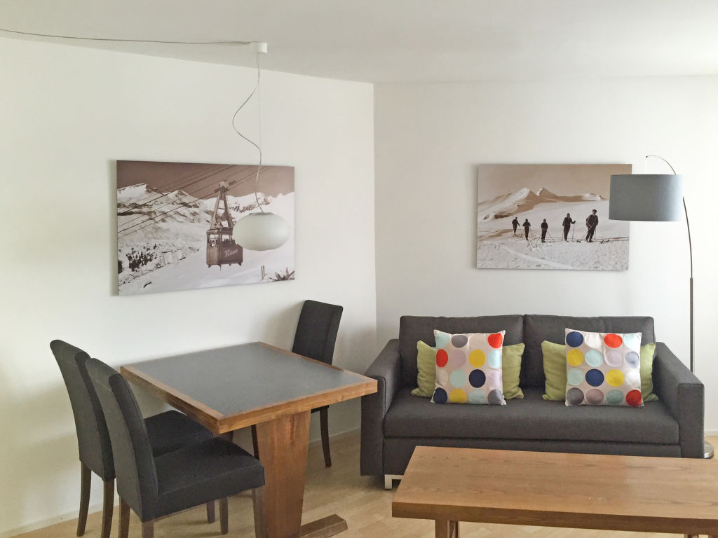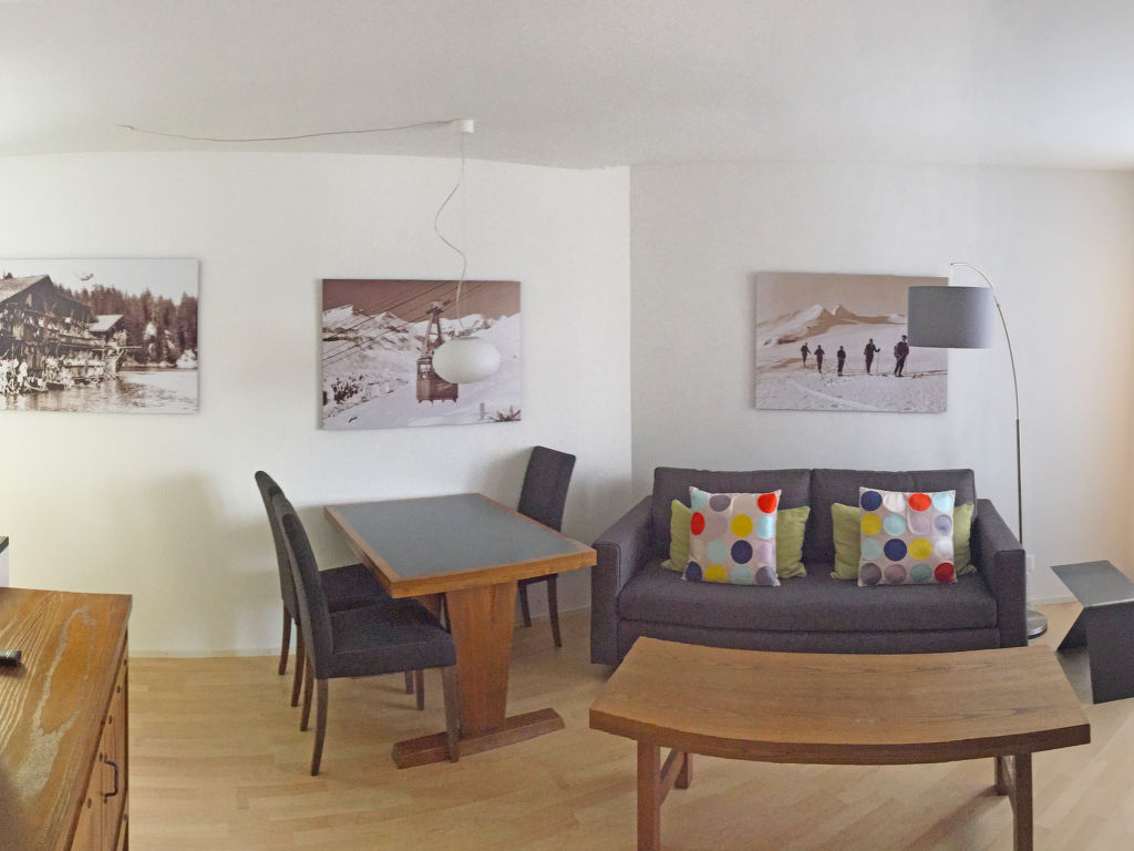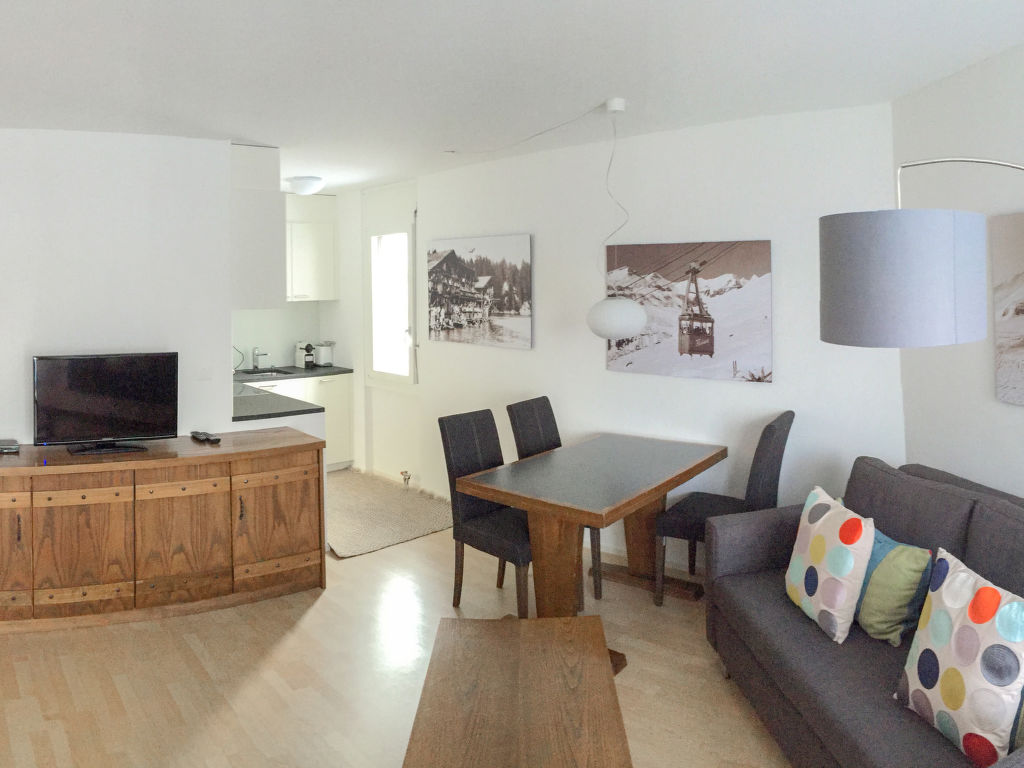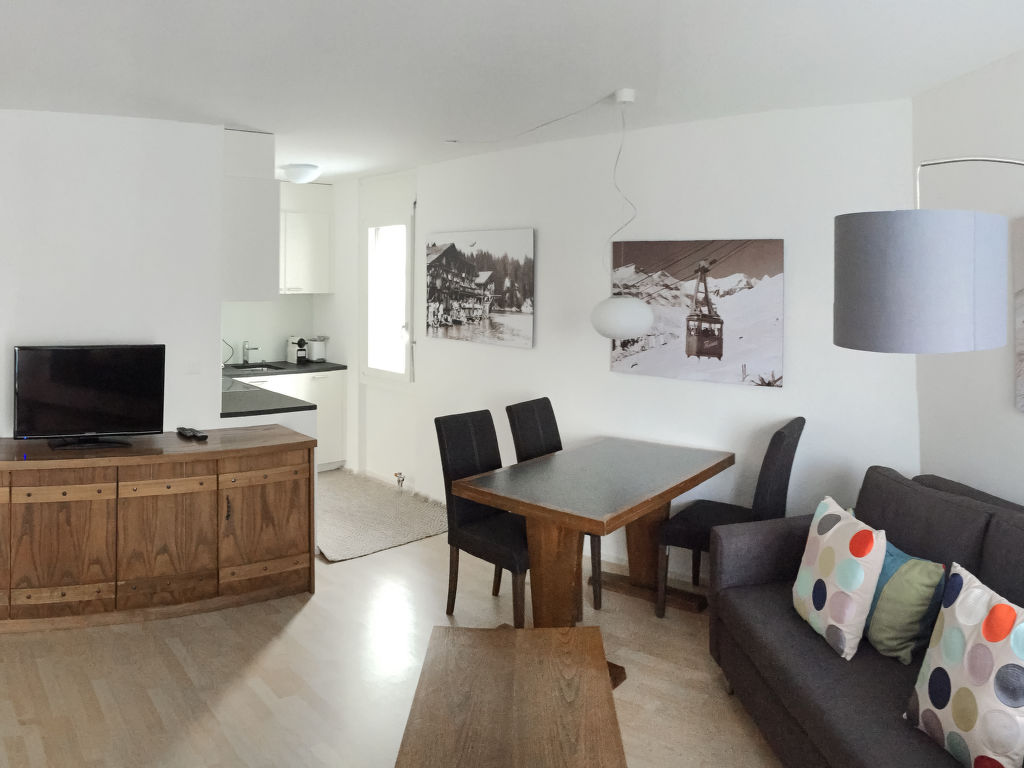 "Casa Tavaun A14", 1-Zimmer-Wohnung 25 m2 im 1. Stock. Vollständig renoviert im Jahre 2015, komfortabel und modern eingerichtet: Wohn-/Esszimmer mit 1 Doppelwandschrankbett, Esstisch und Kabel-TV (Flachbildschirm), Radio. Ausgang zum Balkon. Offene Küche (Backofen, Geschirrspüler, 4 Glaskeramikherd Platten, Mikrowelle). Dusche/WC. Balkon, Südlage. Balkonmöbel. Schöne Sicht auf die Berge, die Landschaft und die Ortschaft. Zur Verfügung: Internet (Wireless LAN, gratis). Garage Nr. A14. Bitte beachten: Nichtraucher-Unterkunft.