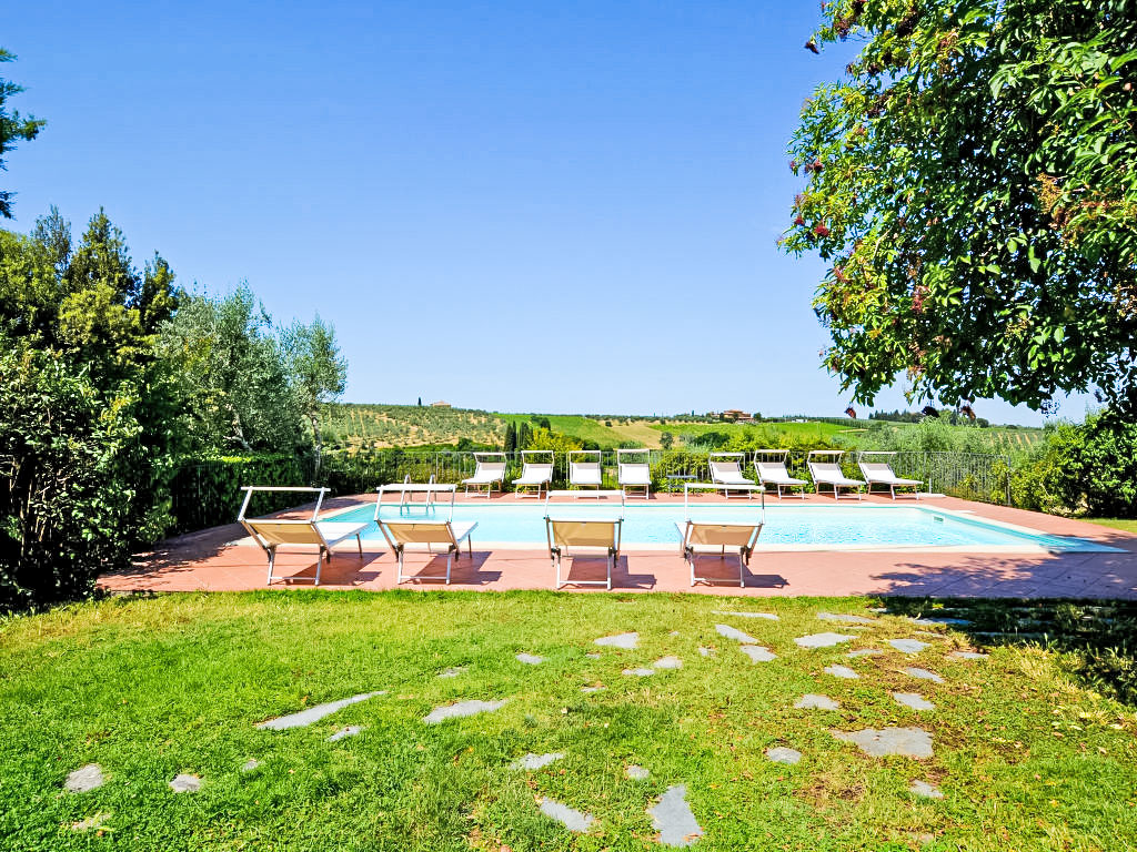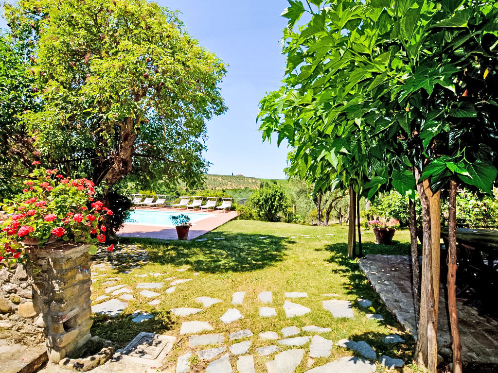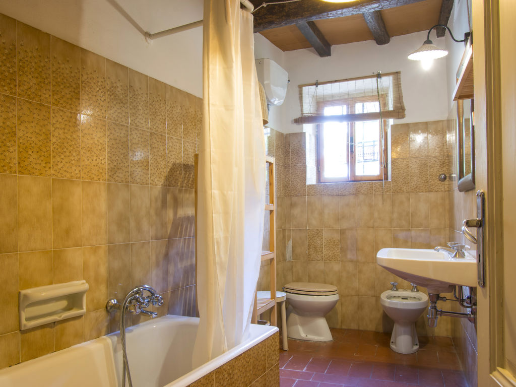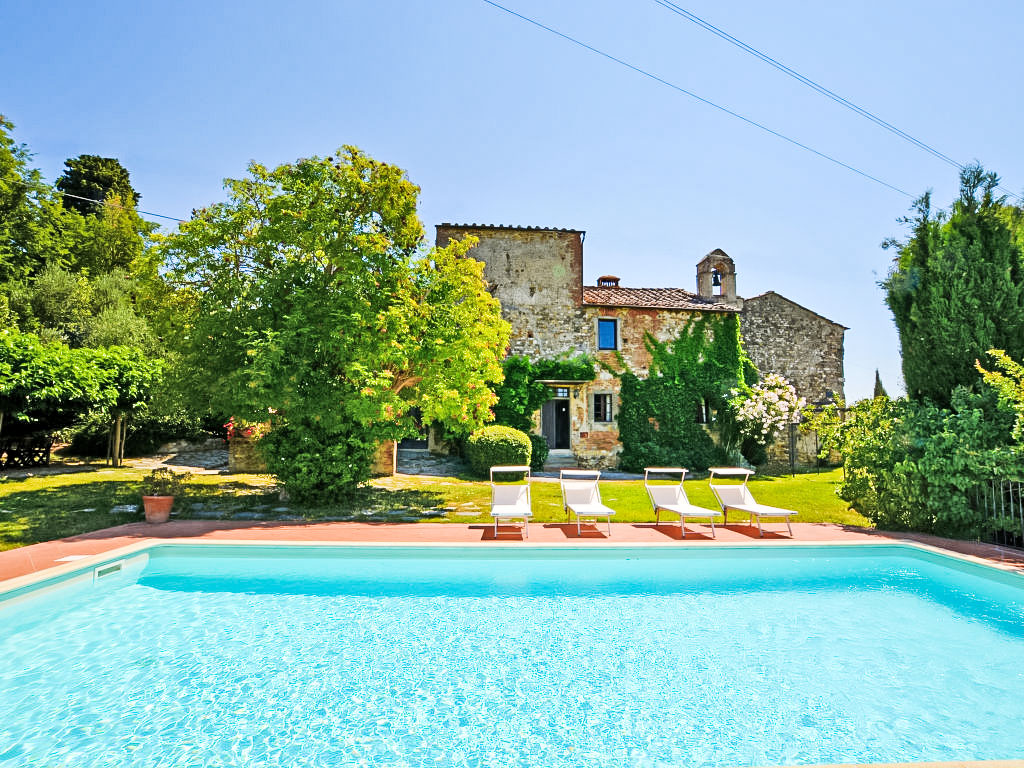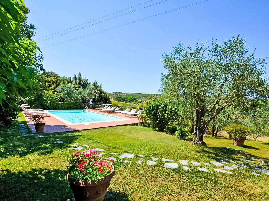 Casa Bulleri ist ein sorgfältig restauriertes Landhaus in Panoramalage des Chianti Classico-Gebietes bei San Casciano, umgeben von Weinbergen und Olivenhainen. Die ursprüngliche Struktur stammt aus dem 16. Jh., wovon ein quaderförmiger Turm und die kleine Kapelle der aktiven Fattoria erhalten sind. Auf dem 30 ha großen Anwesen befinden sich noch die Villa der Besitzer und einige Nebengebäude. Die Gäste haben ein privates Grundstück mit schönem Garten und Schwimmbad in aussichtsreicher Lage. Poolhandtücher stehen zur Verfügung. Degustation und Verkauf von Wein, Olivenöl und Vinsanto möglich. Casa Bulleri gehört zu einem historischen, unter Denkmalschutz stehenden Weingut. Bei der sorgfältigen Restaurierung wurde auf die Erhaltung der originalen, charakteristischen Architektur daher größter Wert gelegt. Schöner Landsitz "Bulleri", renoviert. 4 km vom Zentrum von San Casciano, ruhige, sonnige Lage auf einem Hügel, im Grünen. Zur Mitbenutzung: Grundstück 30 ha. Zur Alleinbenutzung: grosser Garten 2'000 m2 mit Pflanzen, Schwimmbad (5 x 10 m, 140 - 140 cm tief, 03.04.-16.10.). Aussendusche, Terrasse, Gartenmöbel, Grill. Im Hause: Internetzugang, Zentralheizung, Waschmaschine. Wäschewechsel (zusätzlich extra). Handtuchwechsel (zusätzlich extra). Koch möglich (extra). Parkplatz auf dem Grundstück. Einkaufsgeschäft 3 km, Bushaltestelle 4 km. Golfplatz 25 km, Tennis 5 km. Nahe gelegene Sehenswürdigkeiten: Firenze 22 km, Siena 55 km.