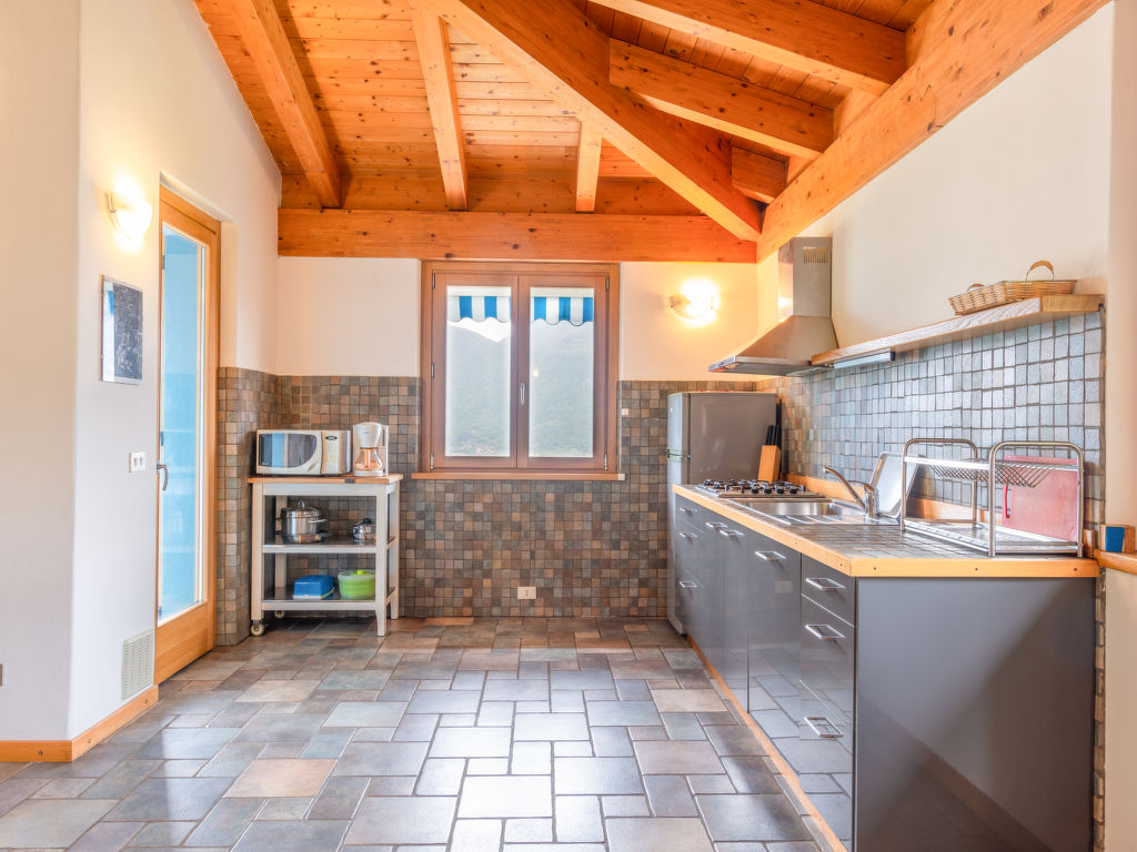 "Il Giogo (MDL120)", 3-Zimmer-Haus 80 m2, im erhöhten Erdgeschoss. Zweckmässig und gemütlich eingerichtet: grosses Wohn-/Esszimmer mit offenem Kamin (nur Deko), Esstisch und Sat-TV. Ausgang zum Balkon, zur Terrasse. 1 Zimmer mit 1 franz. Bett (160 cm). Ausgang zur Terrasse. 1 Zimmer, Fenster zum Wohnzimmer mit 1 franz. Bett (160 cm). Offene Küche (Geschirrspüler, 4 Flammen, Mikrowelle, elektrische Kaffeemaschine). Ausgang zum Balkon. Dusche/WC. G-Heizung, Bodenheizung. Parkettböden. Balkon, Westlage, Terrasse überdacht, Südlage, Garten 400 m2. Terrassenmöbel, Gartengrill, Liegestühle (2). Schöne Panoramasicht auf den See, die Berge und die Ortschaft. Zur Verfügung: Kinderhochstuhl, Babybett. Parkplatz (überdacht, 1 Auto). Bitte beachten: Nichtraucher-Unterkunft. CIR: 097046-CNI-00052