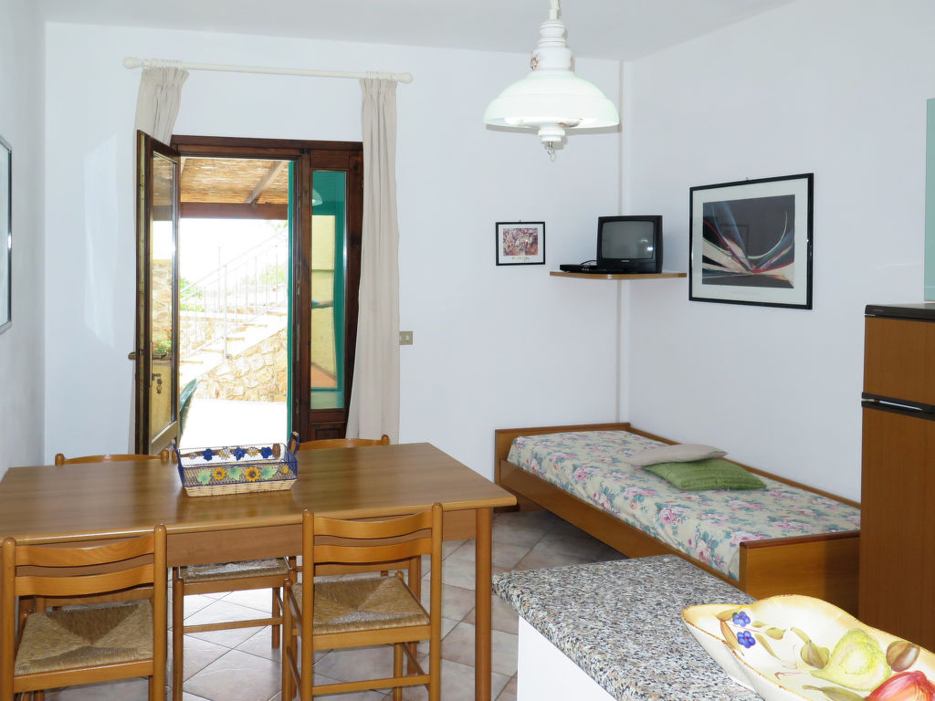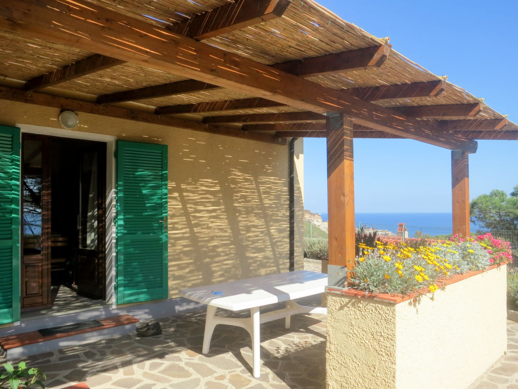 3-Zimmer-Reihenhaus 46 m2. Zweckmässig und gemütlich eingerichtet: Wohn-/Schlafzimmer mit 1 Diwanbett (80 cm), Esstisch und TV. Ausgang zur Terrasse. 1 Zimmer mit 1 Bett (80 cm), 1 franz. Bett (160 cm). 1 Zimmer mit 2 Betten (80 cm). Kochnische (4 Flammen, Tiefkühler). Dusche/Bidet/WC. Keine Heizmöglichkeit. 2 Terrassen, Laube. Terrassenmöbel. Sehr schöne Panoramasicht auf das Meer. Zur Verfügung: Safe. Bitte beachten: Nichtraucher-Unterkunft. Flexibilität bei der Bettenaufteilung: Es stehen mehr Schlafmöglichkeiten zur Verfügung als die maximal zugelassene Personenzahl, diese darf dennoch nicht überschritten werden.