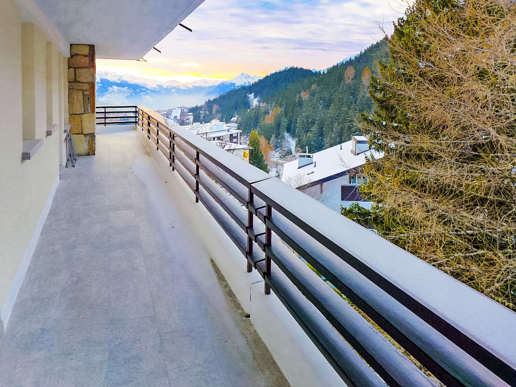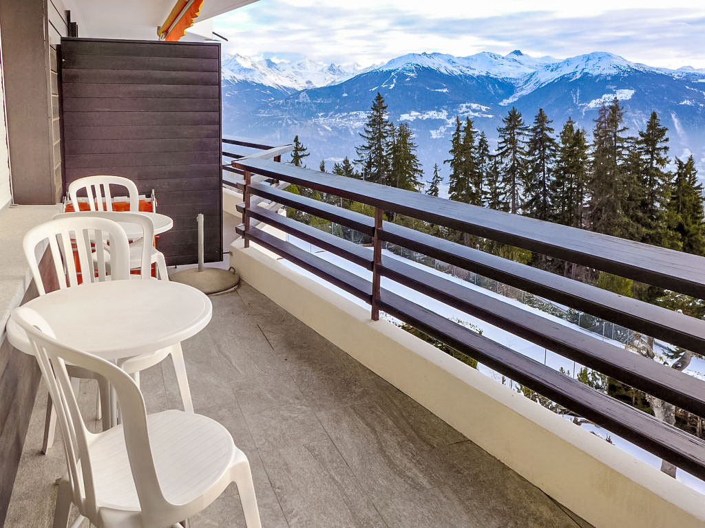 Grosse Residenz "Cransalpin". Oberhalb von Montana, am Ortsrand, 1.5 km vom Zentrum von Montana, sonnige, erhöhte Lage. Zur Mitbenutzung: Garten mit Rasen, Hallenbad beheizt (13 x 8 m, 50 - 200 cm tief, saisonale Verfügbarkeit: 01.Dez.-31.Okt. Öffnungszeiten Schwimmbad: 08:00-20:00). Tennis. Im Hause: Fahrstuhl, Skiraum, Waschmaschine, Wäschetrockner (zur Mitbenutzung, extra). Parkplatz (beschränkte Anzahl). Bushaltestelle "Vermala Soleil" 100 m. Skisportanlagen 700 m. Bitte beachten: Bei guter Schneelage Zufahrt mit den Skiern bis zum Haus. In diesem Haus sind weitere Ferienwohnungen mietbar. COVID-Messungen: Zugang zum Pool mit 2G+. Die Sauna (16:00-20:00) ist in der Nebensaison nicht verfügbar. Schwimmbad im November geschlossen. "Route de Vermala": Pendelbusverkehr im Winter und Ende Juni bis Mitte September.