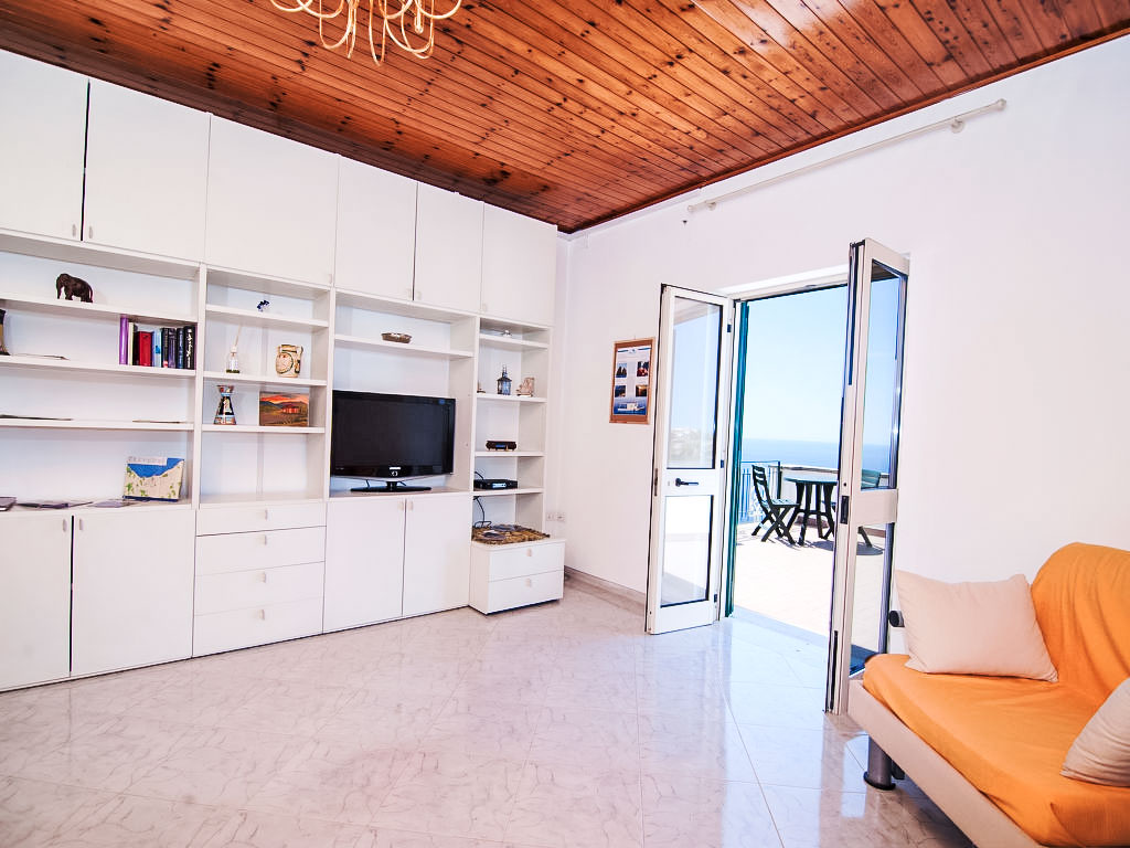"Casetta di Luca", 3-Zimmer-Doppelhaushälfte 90 m2. Teilweise renoviert im Jahre 2017, einfach und zweckmässig eingerichtet: 1 Doppelzimmer. 1 Zimmer mit 2 Betten. Ausgang zum Balkon. 1 Zimmer mit 1 Bett und 1 Diwanbett. Ausgang zur Terrasse. Grosse Küche (4 Kochplatten, Mini-Backofen, Backofen, Tiefkühler) mit Esstisch, TV (Flachbildschirm). Ausgang zum Balkon. 2 Duschen/Bidet/WC. Balkon 15 m2, Terrasse 30 m2. Terrassenmöbel, Balkonmöbel, Liegestühle (2). Herrliche Panoramasicht auf das Meer und die Landschaft. Zur Verfügung: Waschmaschine, Bügeleisen, Fliegengitter, Kinderhochstuhl, Babybett (extra), Haartrockner. Internet (Wireless LAN, gratis). Parkplatz. Geeignet für Familien. Maximal 1 kleines Haustier/Hund erlaubt. Es werden keine zusätzlichen Gebühren vor Ort fällig, ausgenommen der örtlichen Kurtaxe. Bettwäsche, Handtücher, Endreinigung und Stromkosten sind inkludiert. 15063044EXT0223