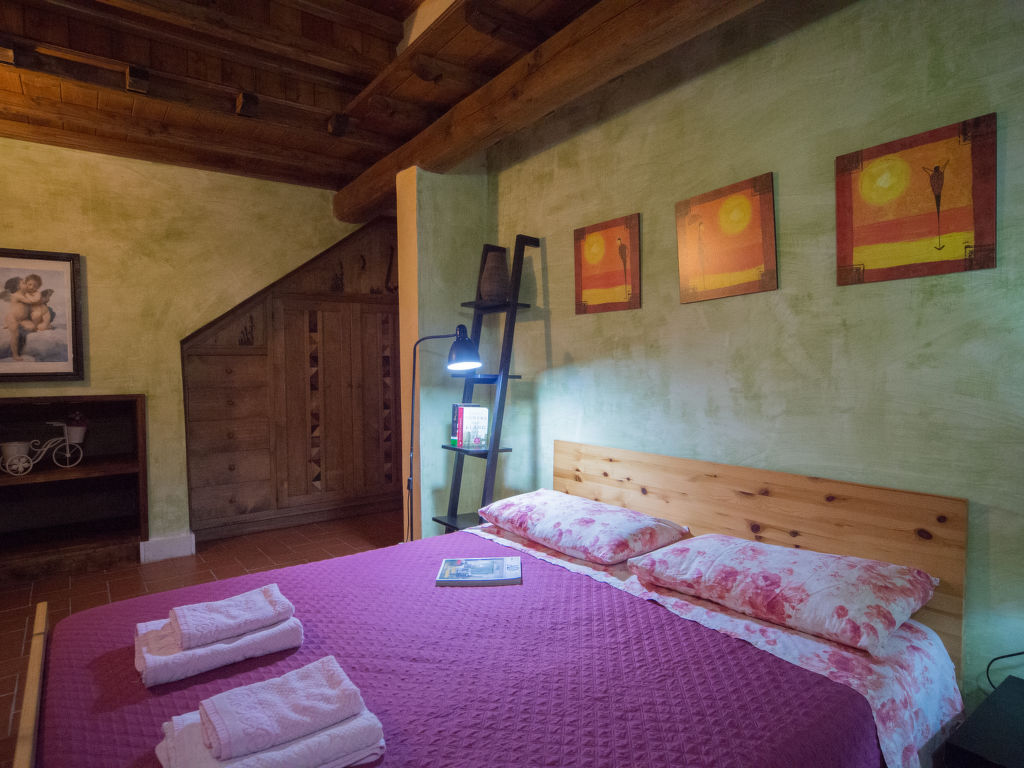 "Casa Alessandro", 2-Zimmer-Wohnung 50 m2. Rustikal eingerichtet: Wohn-/Esszimmer mit 1 Doppeldiwanbett, Esstisch und Sat-TV. Ausgang zur Terrasse. 1 Zimmer mit 1 Doppelbett. Ausgang zum Garten. Kochnische (Backofen, Geschirrspüler, 4 Flammen, Toaster, Tiefkühler, elektrische Kaffeemaschine). Dusche/WC. G-Heizung. Terrasse überdacht, Gartensitzplatz, Garten. Terrassenmöbel, Liegestühle (2). Sehr schöne, auf die Landschaft. Zur Verfügung: Babybett. Internet (Wireless LAN, gratis). Bitte beachten: Nichtraucher-Haus. 1 kleines Haustier/Hund erlaubt.
