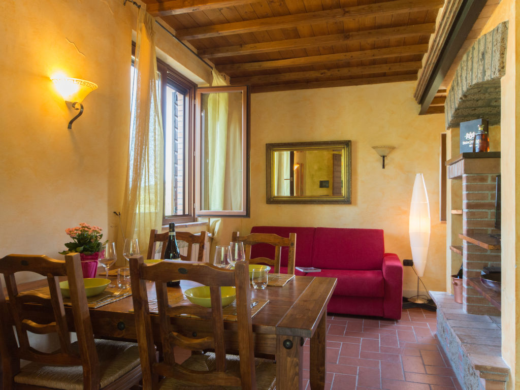 Schöner, gemütlicher Landsitz "Podere La Cavallara", umgeben von Feldern. 6 Wohnungen in der Residenz. 4 km vom Zentrum von Montefiascone, 17 km vom Zentrum von Viterbo, 85 km vom Zentrum von Roma, 1.5 km vom See. Zur Mitbenutzung: Grundstück 2'500 m2, gepflegter Garten mit Rasen und Bäumen, Schwimmbad nierenförmig (12 x 6 m, 140 - 150 cm tief, saisonale Verfügbarkeit: 16.Mai.-03.Okt.) mit Salzelektrolyse-Reinigungssystem. Gartenmöbel, Grill, Kinderspielplatz. Im Hause: Wireless LAN, Waschmaschine (zur Mitbenutzung), Fahrräder vorhanden. Zufahrt (200 m Naturweg). Parkplatz (überdacht) auf dem Grundstück. Einkaufsgeschäft 1.5 km, Supermarkt 4 km, Bahnstation "Montefiascone" 7 km, Sandstrand "Lido Di Tarquinia" 50 km, Grasstrand "Lago Di bolsena" 1.5 km, Thermalbad "Terme Dei Papi" 26 km, Badesee "Lago di Bolsena" 1.5 km. Nahe gelegene Sehenswürdigkeiten: Bolsena 18 km, Civita Di Bagno Regio 18 km, Viterbo 19 km, Grottte Di Castro 25 km, Orvieto 30 km, Pitigliano 40 km. Bitte beachten: Fahrzeug empfohlen.
