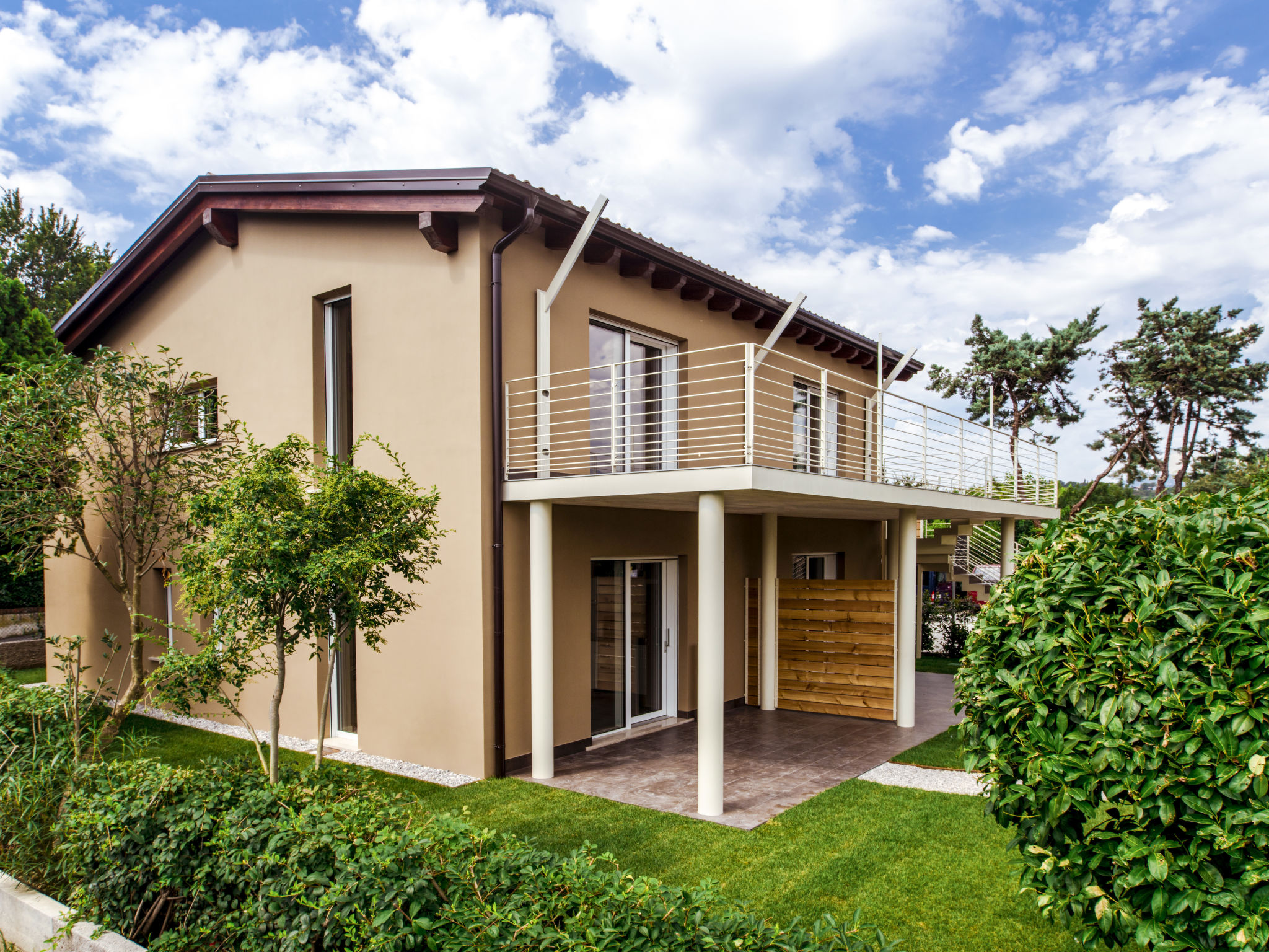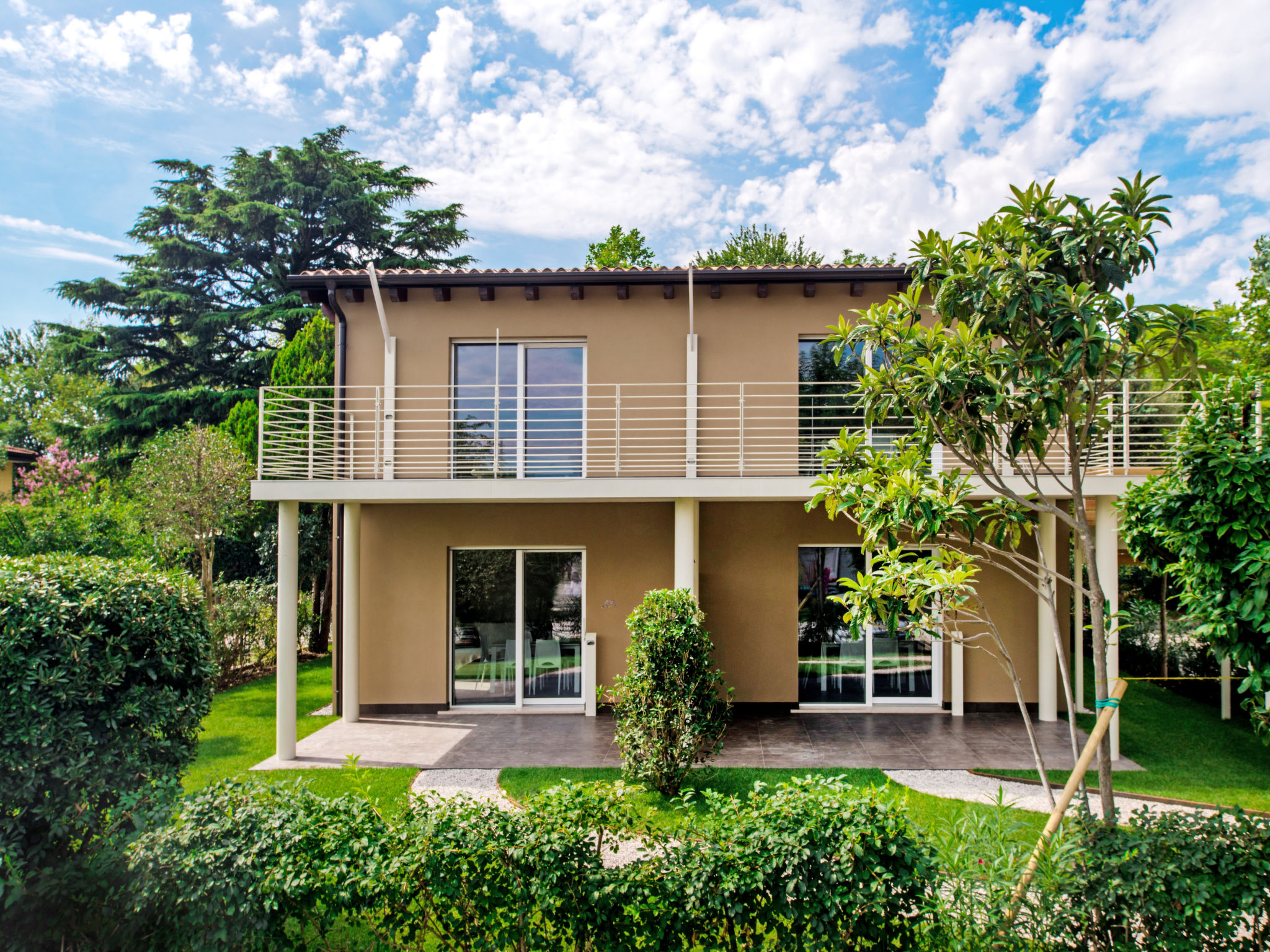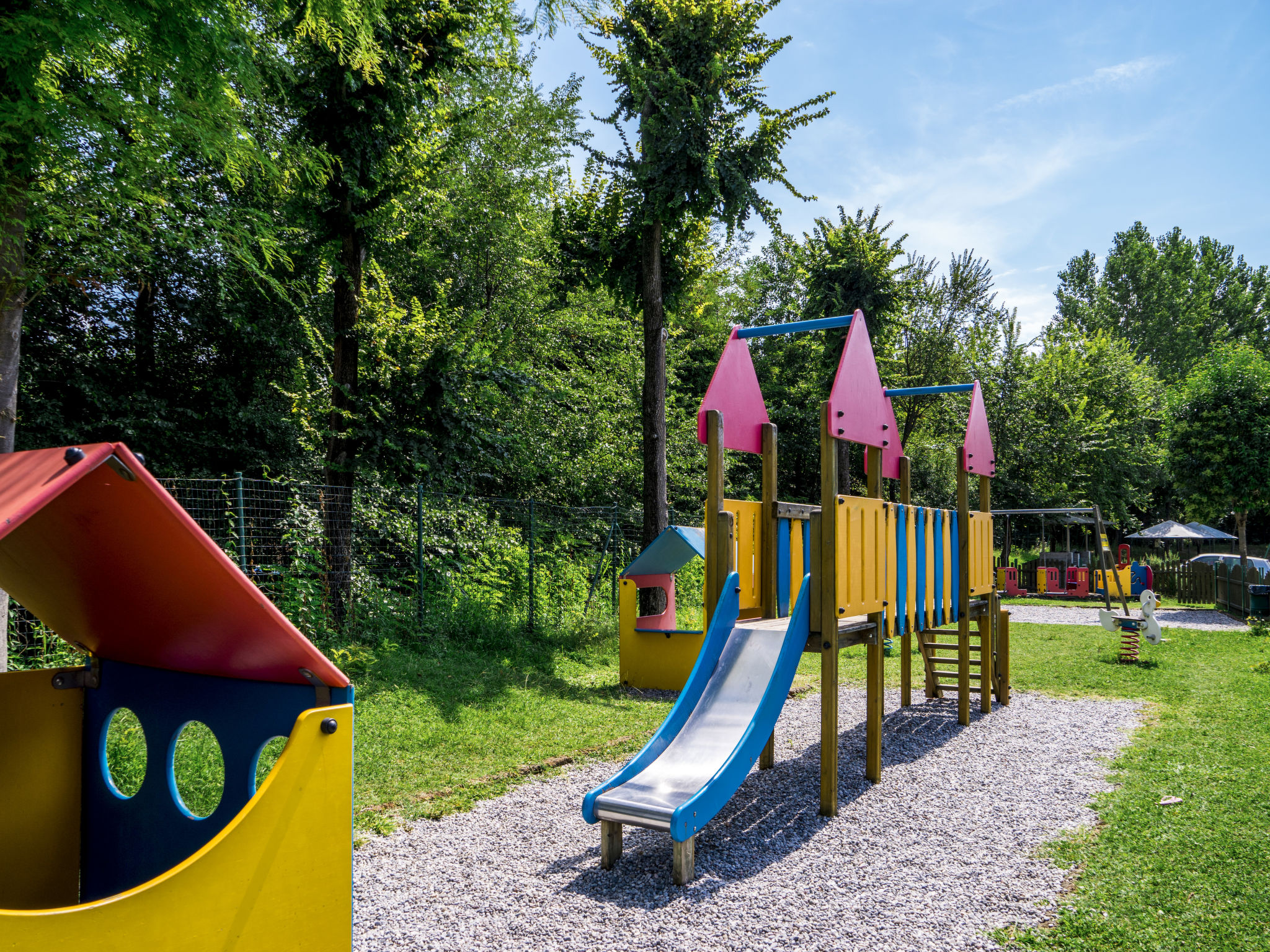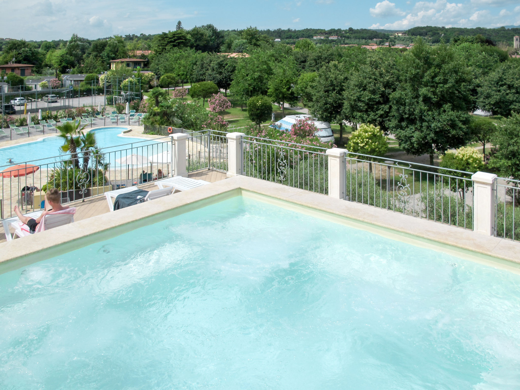 Das 2016 gebaute Haus BAIA DEI FIORI mit 3 Ferienwohnungen steht am Rande der Ferienanlage 'Campeggio Baia Verde'. Manerba 1,8 km. Supermarkt 1 km. See mit Kieselstrand ca. 500 m (direkter Zugang). Hier Uferpromenade für Fußgänger von Porto Torchio bis nach San Felice del Benaco. Die ca. 4 ha große, umzäunte Anlage ist als Park mit Baumbestand angelegt, auf dem sich ca. 85 Mobilhomes verteilen. In der Mitte große Poollandschaft mit Gemeinschaftspool (unregelmäßige Form, ca. 375 m², ca. 1,40 m tief, 01.04.-30.09., je nach Wetterlage, Badekappenpflicht) und separatem Kinderbecken (Ø 8 m, ca. 60 cm tief). Umlaufende Terrasse mit Sonnenliegen und Sonnenschirmen (je nach Verfügbarkeit). Liegewiese. Im Haupthaus: Solarium und Sprudelbad für 8 Personen auf der Sonnenterrasse. Außendusche. Dusche/WC. Multifunktionsfeld. Kinderspielgeräte. Sandkasten. Tischfußball. Tischtennis. Freizeit- und Sportprogramm für Jugendliche sowie Abendveranstaltungen (jeweils Juli/August, auch deutschsprachig). Miniclub (ab 4 Jahre in Juli/August). Rezeption (stundenweise besetzt). Aufenthaltsraum mit TV. Gemeinschaftswaschmaschine/-trockner (jeweils gegen Bezahlung). Bar/Café. Mini-Markt. Bazar. Restaurant/Pizzeria (01.04.-30.09.). Bojenplatz und Bootstrailer (€ 16-20 pro Tag, je nach Saison). Elektroauto-Ladestation (gegen Bezahlung).