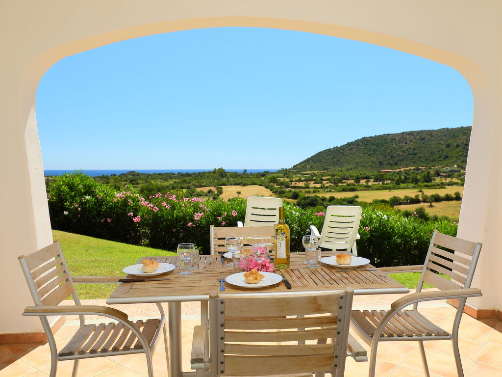 Feriensiedlung "Belpoggio". 25 Häuser im Ferienresort. Im Weiler Tanaunella, 4 km vom Zentrum von Budoni, im Villenviertel, verkehrsberuhigte Zone, 2 km vom Meer. Zur Mitbenutzung: Garten mit Rasen und Blumen, Schwimmbad (60 m2, 160 cm tief, saisonale Verfügbarkeit: 15.Jun.-15.Sep. Öffnungszeiten Schwimmbad: 10:00-13:00 und 15:00-19:00). Grill, Parkplatz auf dem Grundstück. Supermarkt 1 km, Restaurant 1 km, Bar 1 km, Sandstrand 2 km. Nahe gelegene Sehenswürdigkeiten: San Teodoro 17 km. Bitte beachten: Fahrzeug empfohlen. Tiere in der Umgebung.