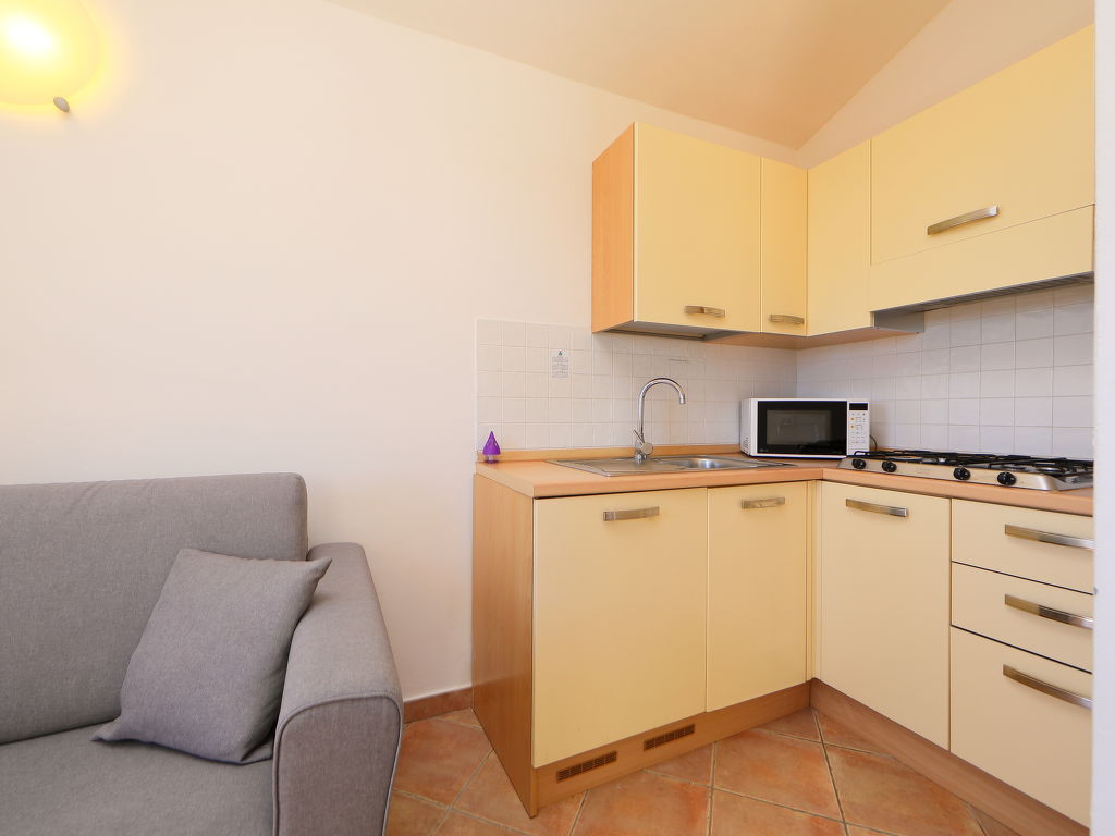 "Belpoggio B 2", 2-Zimmer-Doppelhaushälfte 40 m2, im Erdgeschoss. Zweckmässig eingerichtet: Wohn-/Esszimmer mit 1 Doppeldiwanbett, TV und Klimaanlage. Ausgang zum Gartensitzplatz. 1 Doppelzimmer. Kochnische (4 Kochplatten, Mikrowelle, Tiefkühler). Dusche/Bidet/WC. Klimaanlage (extra). Gartensitzplatz. Terrassenmöbel. Zur Verfügung: Waschmaschine. Bitte beachten: eigener Eingang. IUN:Q2354