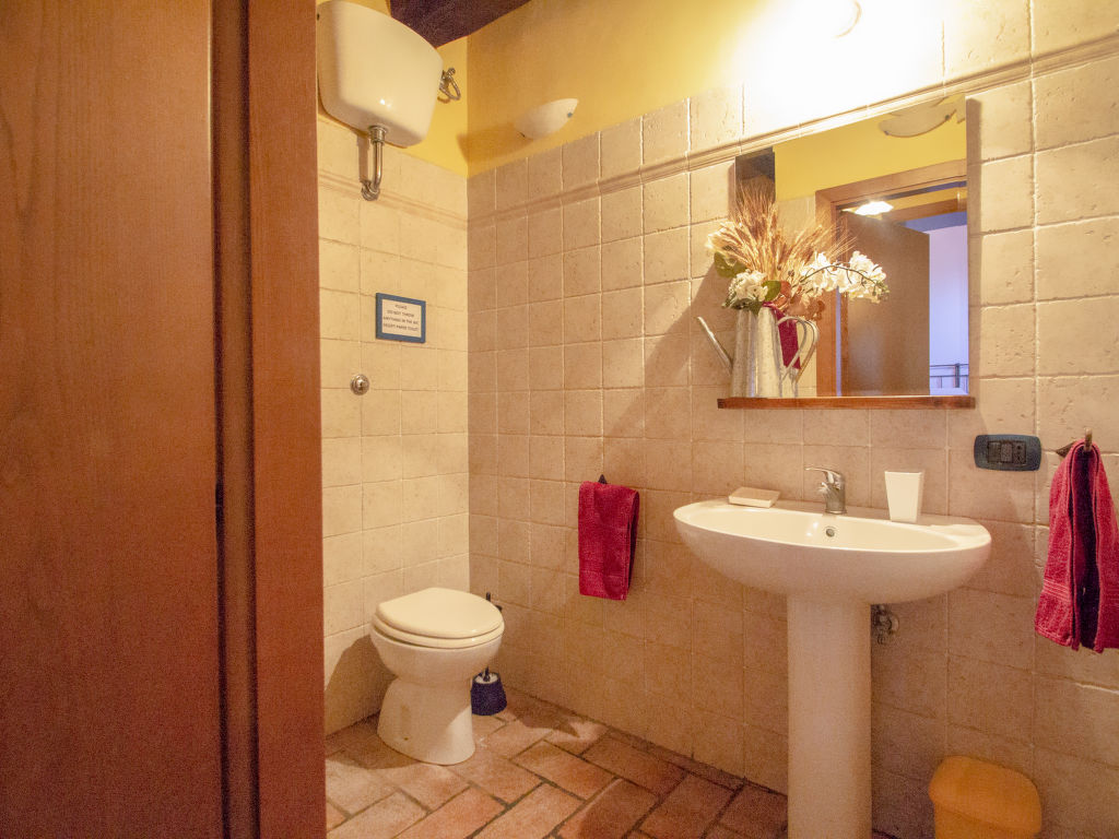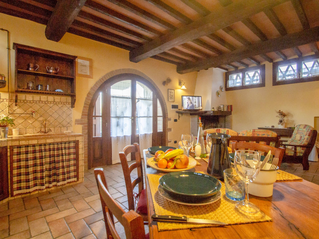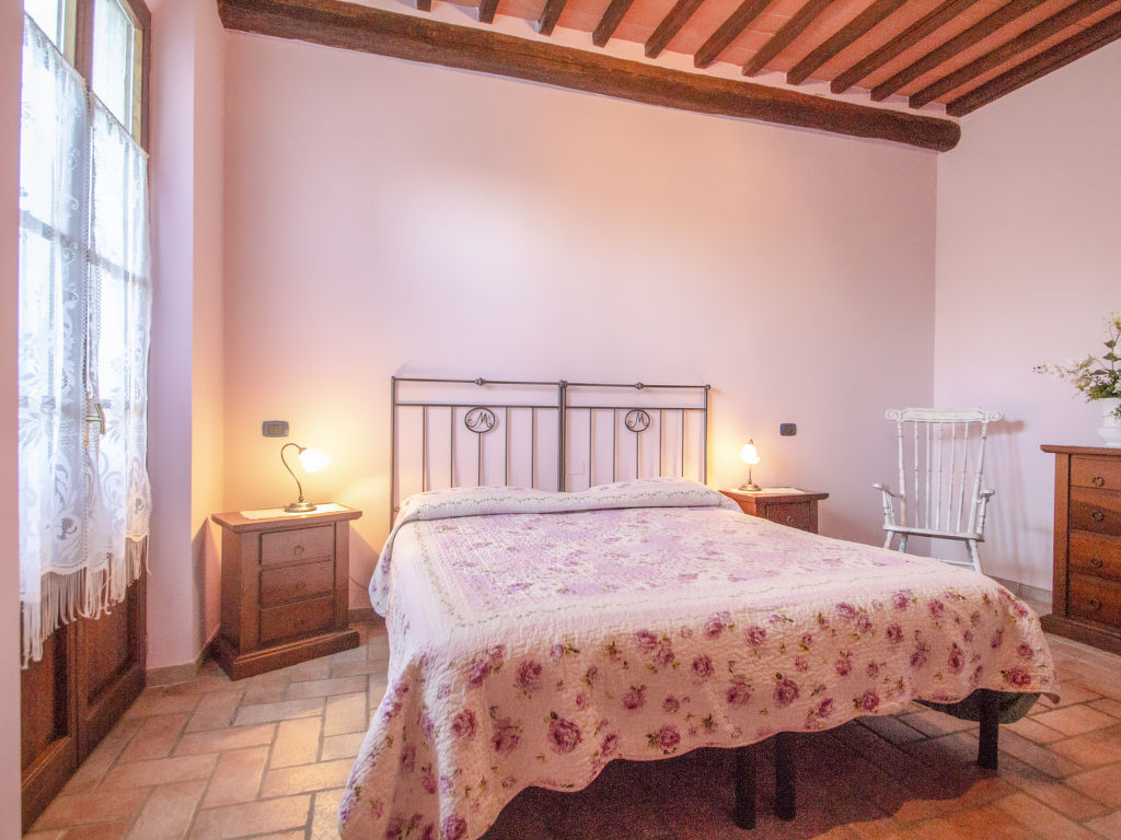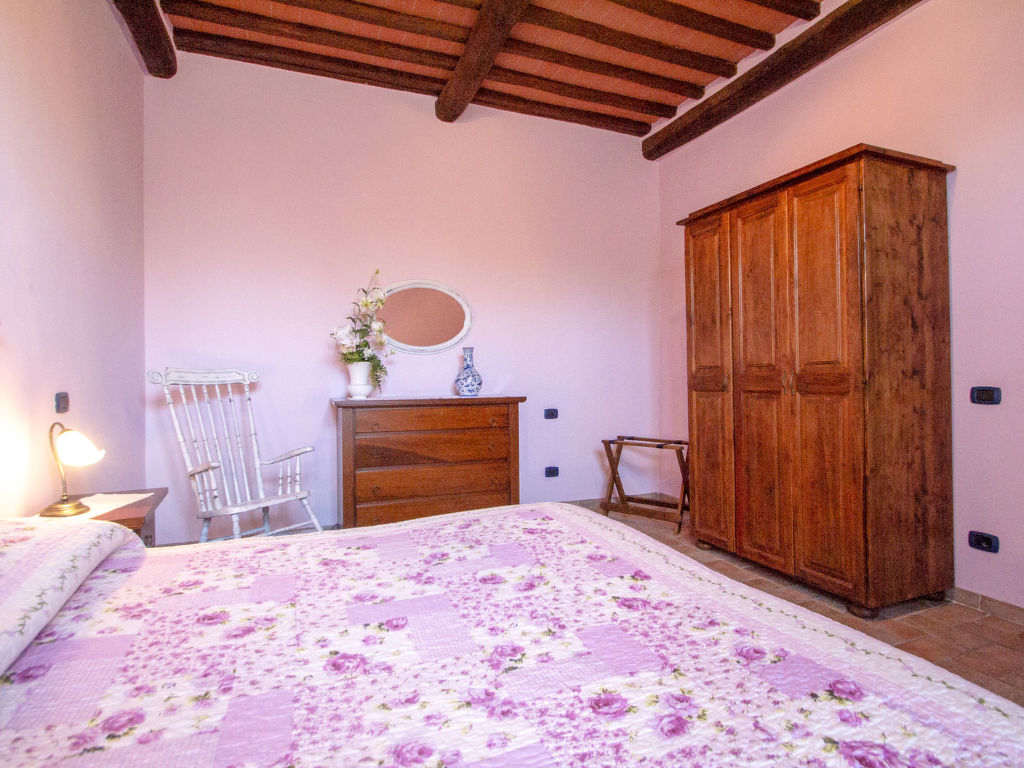 Ehemaliges Bauerngut mit wunderschöner Aussicht auf das Chianti-Classico-Gebiet. Schöne Einrichtung im toskanischen Stil. Automatische Torzufahrt. Poolhandtücher stehen den Gästen zur Verfügung (extra). Verkauf von Wein und Olivenöl aus eigener Produktion. Bauernhaus "La Mirandola", renoviert. 10 km vom Zentrum von Castellina in Chianti, 15 km vom Zentrum von Siena, 45 km vom Zentrum von Firenze, ruhige Lage, im Grünen. Zur Mitbenutzung: Grundstück (eingezäunt), grosser, schöner, gepflegter Garten mit Rasen und Pflanzen, Schwimmbad (14 x 7 m, 140 - 200 cm tief, saisonale Verfügbarkeit: 24.Apr.-16.Okt.). Tischtennis, Terrasse, Gartenmöbel. Zur Alleinbenutzung: Terrasse, Gartenmöbel, Grill. Im Hause: Frühstücksraum, Internetzugang (alles extra), Zentralheizung, Waschmaschine (zur Mitbenutzung, extra), Heizung vor Ort zu zahlen, Heizung nur verfügbar von 01.11. bis 15.04.. Wohnungsreinigung möglich (extra). Frühstück möglich. Parkplatz (überdacht) beim Haus. Einkaufsgeschäft 2 km, Bahnstation "Castellina Scalo" 2 km. Golfplatz 15 km, Tennis 3 km, Reitstall 2 km. Bitte beachten: Der Besitzer wohnt auf dem gleichen Grundstück. Mountainbikes auf Anfrage (gratis).
