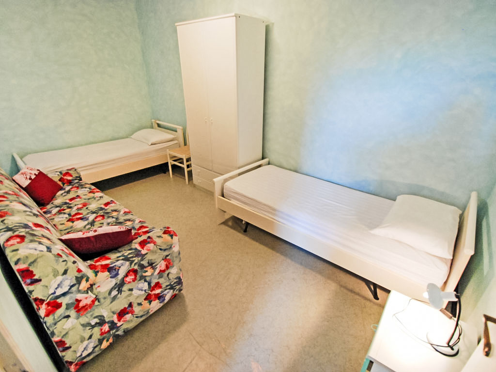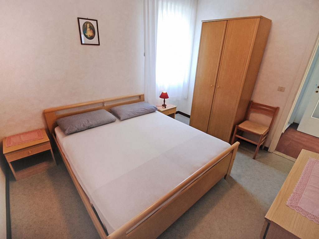 4-Zimmer-Wohnung 80 m2 auf 2 Stockwerken im 2. Stock. Zweckmässig und komfortabel eingerichtet: Wohn-/Schlafzimmer mit 1 Diwanbett, Esstisch und TV (Flachbildschirm). Ausgang zur Terrasse. 1 Zimmer mit 1 Doppelbett. 1 Zimmer mit 2 Betten. 1 Zimmer mit 2 Betten. Kleine Küche (4 Kochplatten, Backofen). 2 Duschen/Bidet/WC. Klimaanlage (extra). Terrassenmöbel. Bitte beachten: geeignet für Familien. 1 Haustier/Hund erlaubt. Kein Fahrstuhl.