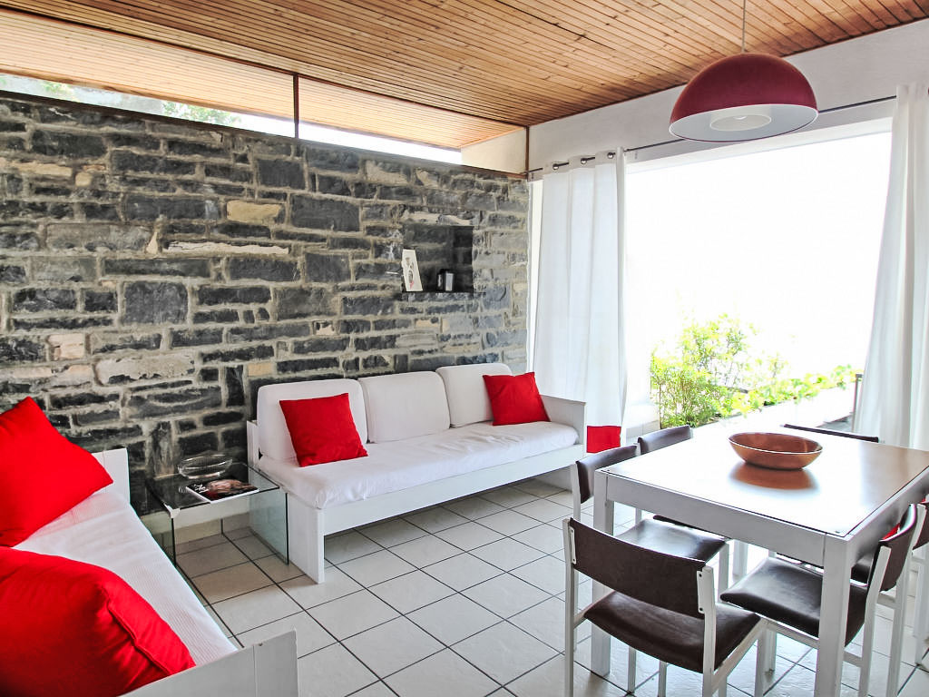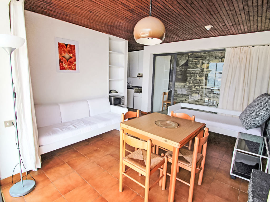 "E superior", 3-Zimmer-Wohnung 43 m2. Teilweise renoviert im Jahre 2018, zweckmässig eingerichtet: Wohn-/Esszimmer mit Panoramafenster mit 2 Diwanbetten und TV. 1 Doppelzimmer. Ausgang zur Terrasse. 1 kleines Zimmer mit 2 Betten. Ausgang zur Terrasse. Kochnische (4 Kochplatten, Mikrowelle, Tiefkühler). Dusche/WC. Heizung (extra). Terrasse 40 m2. Terrassenmöbel, Liegestühle. Herrliche Sicht auf den See. Zur Verfügung: Haartrockner. Internet (Wireless LAN, gratis). 1 Haustier/Hund erlaubt. CIR: 013186-VIT-00001