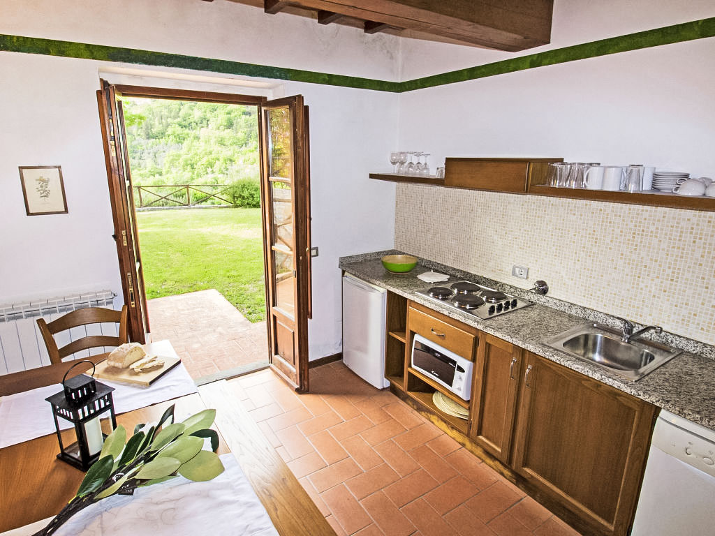 "I Lecci", 4-Zimmer-Haus 127 m2 auf 2 Stockwerken. Geräumig, komfortabel und geschmackvoll eingerichtet: grosses Wohn-/Schlafzimmer mit 1 Doppeldiwanbett (130 cm), Sat-TV (Flachbildschirm). Ausgang zum Garten. 1 Zimmer mit 1 franz. Bett (140 cm, Länge 190 cm). Ausgang zum Garten. Küche (4 Kochplatten, Geschirrspüler, Mikrowelle). Ausgang zum Garten. Bad/Bidet/WC. Obergeschoss: 1 Zimmer mit 1 franz. Bett (140 cm, Länge 190 cm). 1 Doppelzimmer (160 cm, Länge 190 cm). Bad/Bidet/WC. Garten. Terrassenmöbel, Gartengrill (mobil). Eingeschränkte Panoramasicht auf das Tal. Zur Verfügung: Waschmaschine, Safe. Internet (Wireless LAN, gratis). Geeignet für Familien. 1 Haustier/Hund erlaubt. Waschraum im vertieften Erdgeschoss. Küche mit 4 E-Herdplatten.