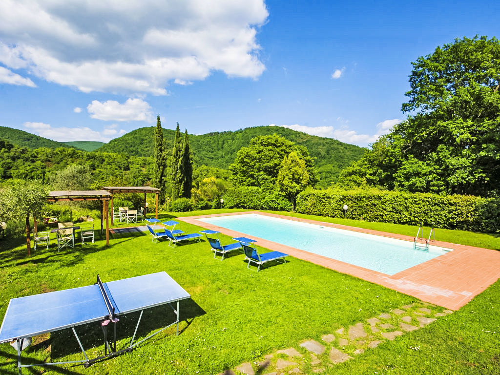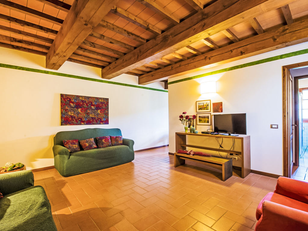 Ein Weiler umgeben von Landschaft mit 4 Einfamilienhäusern. Auf einem kleinen Platz können Sie 2 Häuser (I lecci, La Pieve) sehen, La Torre und La Corte sind in einem anderen Gebäude, getrennt von dem Rest durch einen zentralen Innenhof, welcher der ausschliesslichen Nutzung von «La Corte» dient (I5269.951.5). Die Einrichtung und die Ausstattung sind gepflegt und bieten maximalen Komfort. Sehr kinderfreundliche, gemütliche Feriensiedlung "BORGO", umgeben von Weinbergen. 4 Häuser in der Residenz. 8 km vom Zentrum von Greve in Chianti, 32 km vom Zentrum von Firenze, 55 km vom Zentrum von Siena. Zur Mitbenutzung: Schwimmbad (6 x 14 m, 80 - 220 cm tief, saisonale Verfügbarkeit: 30.Apr.-01.Okt.). Grill. In der Anlage: Internetzugang, Wireless LAN, Heizung vor Ort zu zahlen (01.11.-15.04.), Heizung nur verfügbar von 01.11. bis 15.04.. Wohnungsreinigung möglich (extra). Parkplatz auf dem Grundstück. Einkaufsgeschäft 3 km. Golfplatz (18 Loch) 9 km, Tennis 9 km, Reitstall 9 km. Nahe gelegene Sehenswürdigkeiten: Panzano in Chianti 17 km, Radda in Chianti 21 km, San Casciano in Val di Pesa 23 km, Gaiole in Chianti 29 km, San Gimignano 55 km. Für die zweite Woche betragen die Kosten für Bettwäsche und die Handtücher € 12.- pro Person (auf Anfrage). Das Anwesen ist mit einem Videoüberwachungssystem mit Kameras ausgestattet.