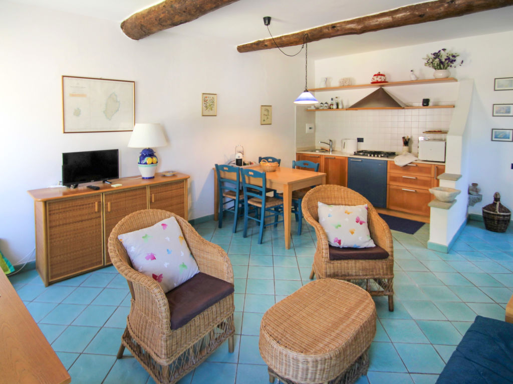 2-Zimmer-Wohnung 45 m2 im 1. Stock. Zweckmässig eingerichtet: Wohn-/Schlafzimmer mit 1 Doppeldiwanbett (140 cm), Esstisch und Sat-TV. 1 Doppelzimmer mit Dusche/Bidet/WC. Kochnische (4 Kochplatten, Mikrowelle). G-Heizung (extra). Natursteinböden. Garten 30 m2. Terrassenmöbel, Liegestühle (2). Zur Verfügung: Internet (Wireless LAN, gratis). Bitte beachten: Nichtraucher-Unterkunft, kein Parkplatz. Eigener Eingang. Der Garten ist über eine Treppe (20 Stufen) zu erreichen. CITRA:011024-LT-0168