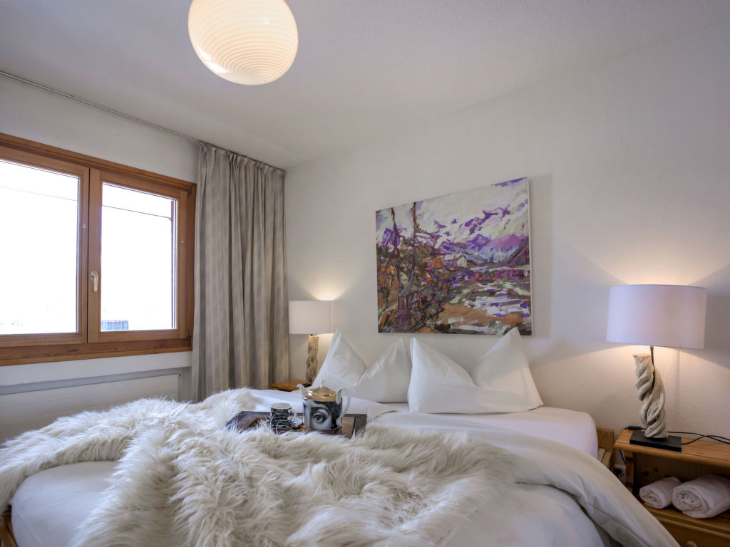 "Chesa Ludains 8", 2-Zimmer-Wohnung 60 m2 im 2. Stock. Sehr geschmackvoll und stilvoll eingerichtet: Wohn-/Esszimmer mit Vorhang mit 1 Diwanbett (75 cm, Länge 170 cm), Esstisch und TV (Flachbildschirm). Ausgang zum Balkon. 1 Doppelzimmer mit 1 Doppelbett (2 x 90 cm, Länge 195 cm). Offene Küche (Backofen, Geschirrspüler, 4 Glaskeramikherd Platten, Toaster, Wasserkocher, elektrische Kaffeemaschine, Kapseln für die Kaffeemaschine (Nespresso) extra). Bad/WC. Bodenheizung. Parkettböden, Teppichboden. Kleiner Balkon. Balkonmöbel. Sicht auf den See und die Berge. Zur Verfügung: Haartrockner. Internet (Wireless LAN, gratis). Garage Nr. 8 (1 Auto), Höhe 225 cm, Breite 330 cm. Bitte beachten: Nichtraucher-Unterkunft.