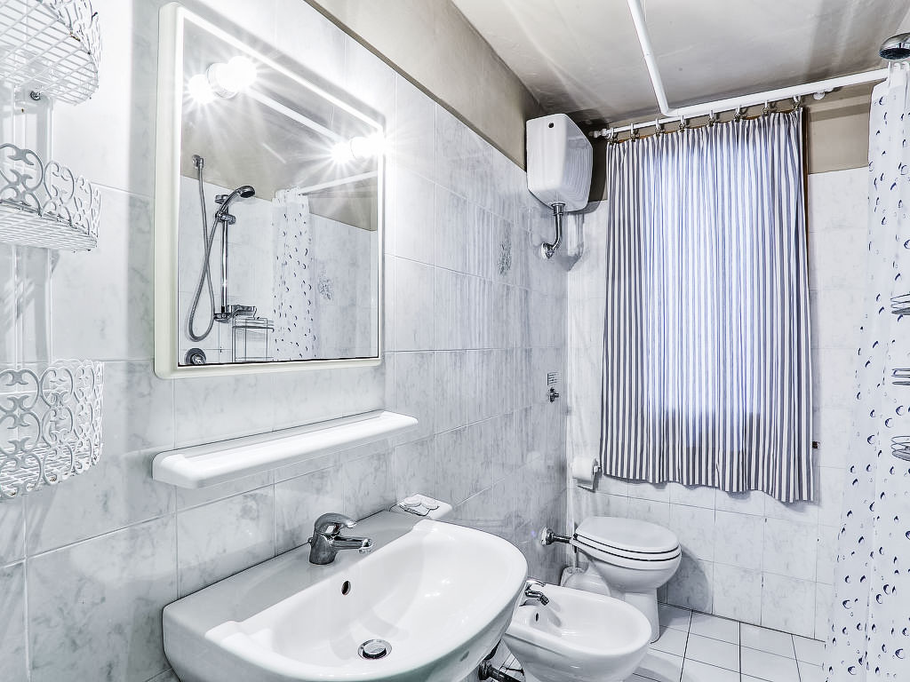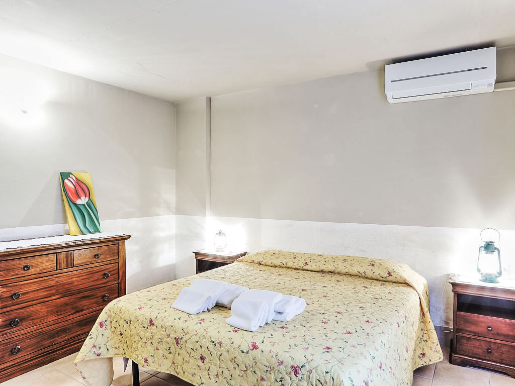 "Tulipano", 3-Zimmer-Wohnung 65 m2, im Erdgeschoss. Wohn-/Esszimmer mit 1 Diwanbett (120 cm, Länge 190 cm), Sat-TV und Flachbildschirm. Ausgang zur Loggia. 1 Doppelzimmer. Kochnische (4 Kochplatten, Geschirrspüler). Dusche/Bidet/WC. Unteres Geschoss: 1 Zimmer, ohne Fenster mit 2 Betten und Dusche/Bidet/WC. Klimaanlage (extra). Garten 15 m2. Terrassenmöbel. 1 Haustier/Hund erlaubt.