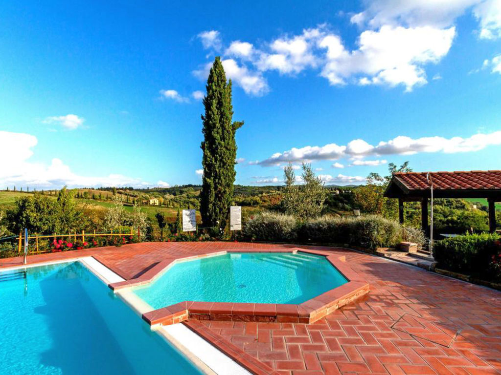 8 km von Montaione: Die Residenz I Calanchi liegt im Herzen der Toskana zwischen Florenz, Siena, Pisa, San Gimignano und Volterra und an Hügellage am Ortsrand von Sughera (Montaione). Umgeben von hohen Zypressen, Wiesen, Getreidefeldern, Olivenhainen und dem mediterranen Wald ist es ideal gelegen für alle, die Erholung suchen und Liebhaber von Meer, Bergen und Kunststädten sind. Die Feriensiedlung bietet insgesamt 16 separate Wohnungen an, wovon 13 in unserem Angebot sind. Den Gästen steht eine ausgestattete Laube zur Verfügung, um im Freien zu frühstücken. Mountain-Bike-Vermietung an Ort. Für Fahrrad- und Wander-Begeisterte gibt es ein weitverzweigtes Wegnetz. Zahlreiche Restaurants in der Gegend. Residenz "I Calanchi", 341 m.ü.M.. 25 km vom Zentrum von S. Gimignano, Certaldo, 30 km vom Zentrum von Volterra, 50 km vom Zentrum von Firenze, Pisa. Zur Mitbenutzung: Garten, Schwimmbad (16 x 8 m, 150 - 150 cm tief, saisonale Verfügbarkeit: 09.Apr.-15.Okt.). Kinderbecken, Aussendusche, Tischtennis, Boccia, Volleyballfeld, Terrasse, Gartenmöbel, Grill. Im Hause: Empfang, Internetzugang (alles inkl.), Waschmaschine (extra), Heizung vor Ort zu zahlen (01.11.-15.04.), Heizung nur verfügbar von 01.11. bis 15.04.. Brötchenservice auf Anfrage (extra). Parkplatz beim Haus. Lebensmittelgeschäft 3 km, Supermarkt 8 km, Restaurant 3 km, Bar 3 km, Bahnstation "Castelfiorentino" 15 km. Golfplatz 10 km, Reitstall 2 km. Nahe gelegene Sehenswürdigkeiten: Pisa 57 km, Volterra 35 km, Firenze 62 km, Lucca 57 km, Siena 67 km, San Gimignano 25 km.