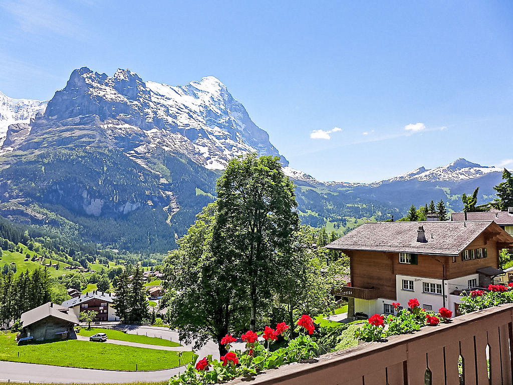 3-Zimmer-Wohnung 60 m2 im 1. Stock, Südlage. Gemütlich eingerichtet: Wohn-/Esszimmer mit Kabel-TV (Flachbildschirm), Radio. Ausgang zum Balkon, Richtung Süden und Richtung Westen. 1 Zimmer mit 2 Betten (90 cm, Länge 200 cm). 1 Zimmer mit 1 Bett (90 cm, Länge 200 cm), 1 x 1 Etagenbetten (90 cm, Länge 200 cm). Küche (Backofen, Geschirrspüler, 4 Glaskeramikherd Platten, Mikrowelle, elektrische Kaffeemaschine, Kapseln für die Kaffeemaschine (Nespresso) extra, Racletteofen, Fondue Set (Käse)). Dusche/WC. Grosser Balkon 10 m2. Herrliche Sicht auf die Berge, das Tal und Eigernordwand. Zur Verfügung: Haartrockner. Internet (Wireless LAN, gratis). Parkplatz Nr. 5, ganz rechts. Bitte beachten: Nichtraucher-Unterkunft.
