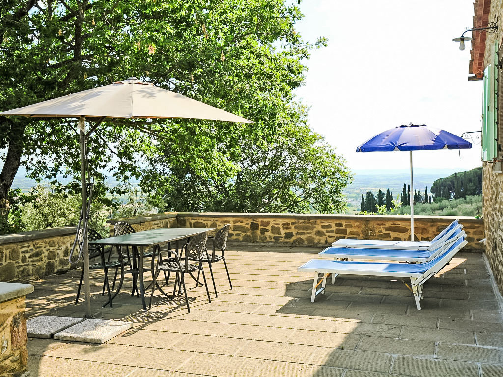 Alleinstehender Landsitz "Cortona Sunshine", 490 m.ü.M.. 2 km vom Zentrum von Cortona, sonnige Lage, im Grünen. Zur Alleinbenutzung: Garten 500 m2 (eingezäunt), Schwimmbad (9 x 4 m, 100 - 200 cm tief, 01.05.-15.10.). Pergola, Gartenmöbel, Feuerstelle, Grillhaus. Im Hause: Internetzugang. Zufahrt (200 m Naturweg). Parkplatz auf dem Grundstück. Lebensmittelgeschäft 2 km, Supermarkt 5 km, Restaurant 2 km, Bahnstation "Camucia-Cortona" 5 km, See Trasimeno 10 km. Nahe gelegene Sehenswürdigkeiten: Arezzo 30 km, Siena 80 km, Perugia 80 km, Firenze 120 km.