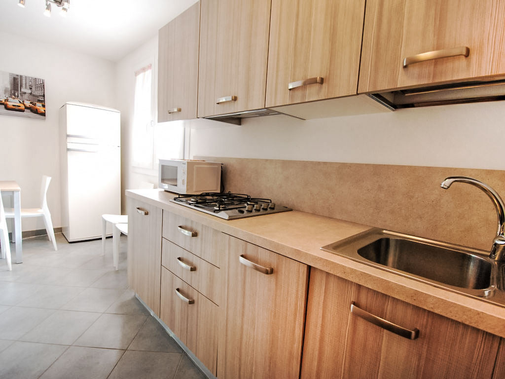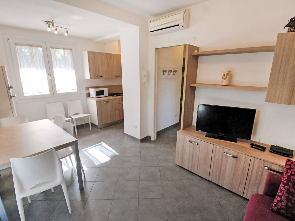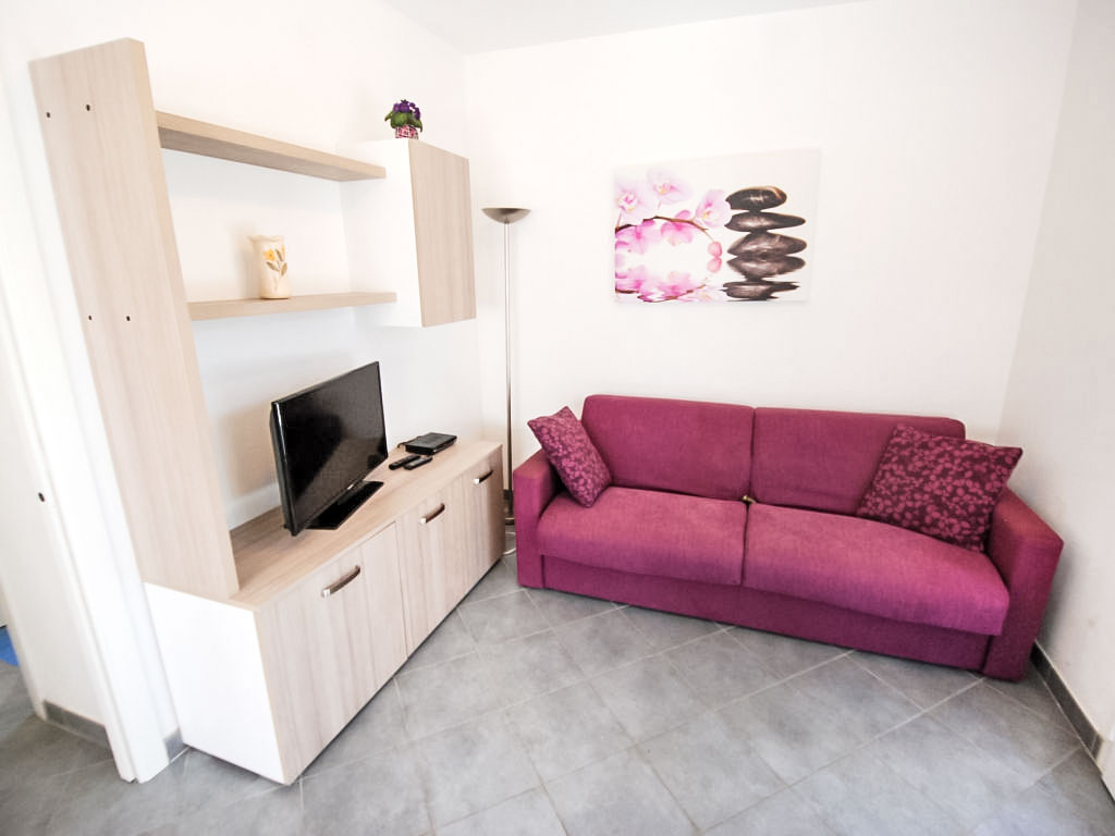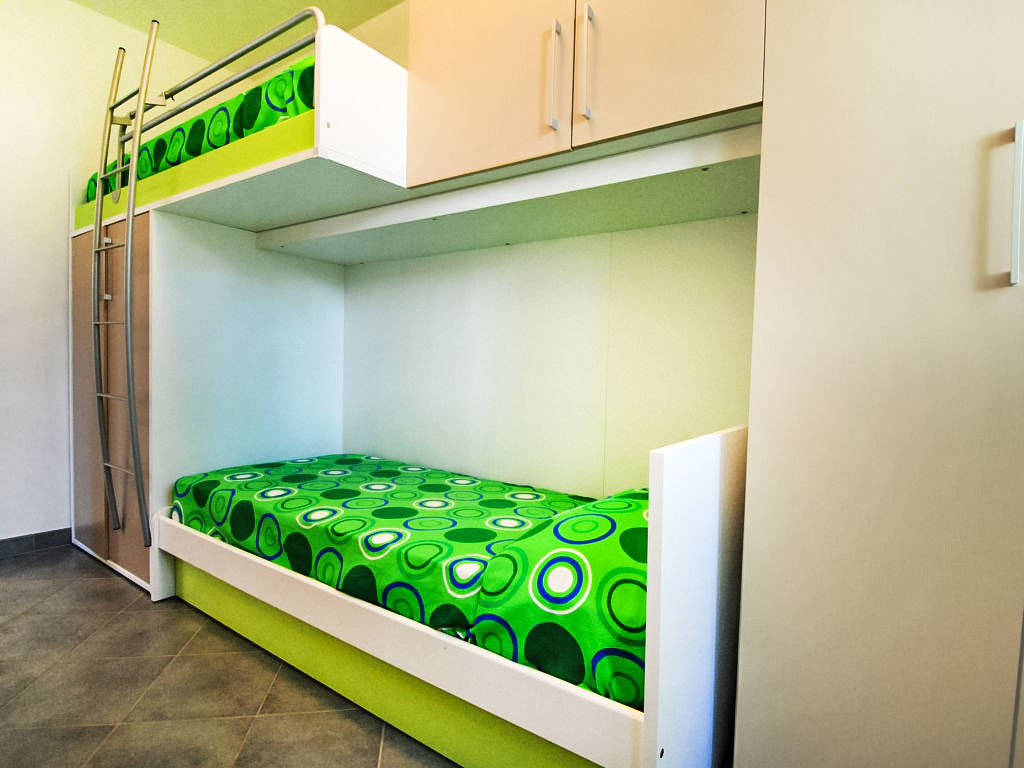 3-Zimmer-Doppelhaushälfte 70 m2. Objekt geeignet für 4 Erwachsene + 2 Kinder. Hell, vollständig renoviert, zweckmässig und komfortabel eingerichtet: Wohn-/Schlafzimmer mit 1 Doppeldiwanbett und TV. Ausgang zum Garten. 1 Zimmer mit 1 Doppelbett. 1 Zimmer mit 1 x 2 Etagenbetten. Kochnische (4 Kochplatten, Geschirrspüler, Mikrowelle, Tiefkühler) mit Esstisch. Dusche/Bidet/WC. Klimaanlage, Warmluftheizung (extra), Boiler (80 Liter). Zur Verfügung: Waschmaschine. Parkplatz (2 Autos). 1 Haustier/Hund erlaubt.