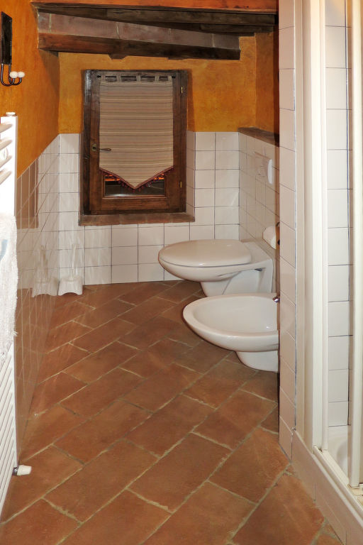 3-Zimmer-Wohnung 'Glicine', Erdgeschoss, 2 Ebenen, ca. 50 m². Separater Eingang in Wohn-/Schlafraum mit Bettcouch, Essplatz, Küchenzeile (4 Flammen, Minibackofen, Kühlschrank, Kaffeemaschine, Wasserkocher) und Terrassenausgang. Dusche/Bidet/WC. Vom Wohnraum Treppe zur oberen Ebene (Dachschräge): Doppelzimmer. Zweibettzimmer. Fligengitter. Es werden keine zusätzlichen Gebühren vor Ort fällig, ausgenommen der örtlichen Kurtaxe.