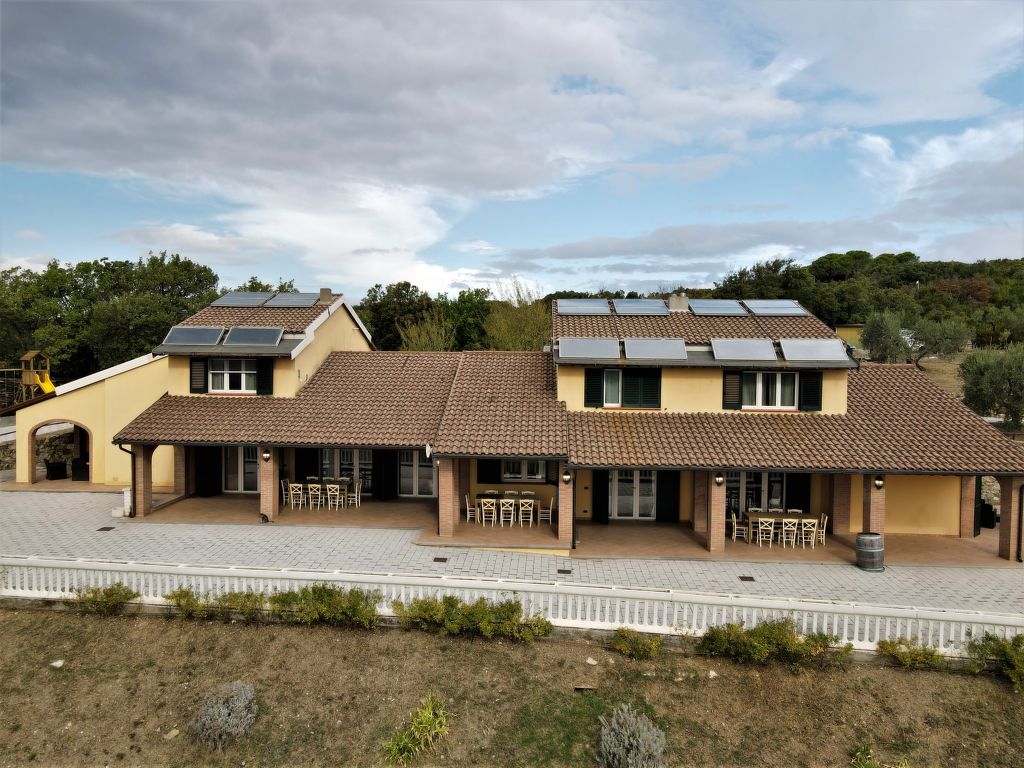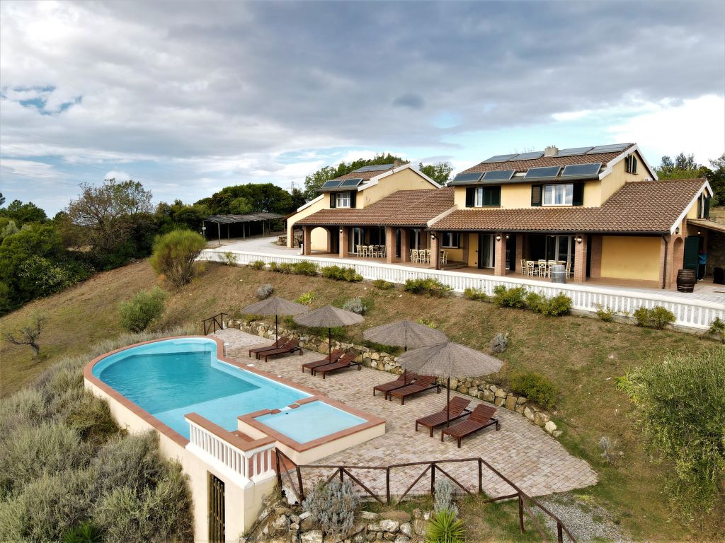 Das neuere Ferienhaus POGGIO AGLI ULIVI steht im Ortsteil Sorbugnano, 4 km westlich von Riparbella. Nächste Einkaufsmöglichkeit in Riparbella, nächster Supermarkt 9 km. Hallenbad und Strände in Cecina, 11 km. Erhöhte Hügellage mit weitem Blick bis zum Meer. Zufahrt ca. 500 m über teils ansteigende Schotterstraße. Die Zufahrt ist nicht für Pkw mit geringer Bodenfreiheit geeignet. 10 Parkplätze auf dem Grundstück, 7 davon beschattet. Ca. 3 ha großes offenes Hanggrundstück mit Wiese und Olivenbäumen. Unterhalb des Hauses geschwungener Pool (ca. 13 x 5 m, ca. 1-1,30 m tief, 14.05.20-08.10.22, geöffnet 9-20 Uhr) mit integriertem Kinderbecken (2 x 2 m), gepflasterte Terrasse, Sonnenliegen und 3 Sonnenschirme. Grundstückspflege 1x pro Woche durch einen Gärtner. Das Haus besteht aus drei intern nicht miteinander verbundenen Hausteilen in Reihenhausbauweise mit einem gemeinsamen, über die gesamte Hausfront verlaufenden Portico mit 3 Tischen, 24 Gartenstühlen und gemauertem Grill. Geschmackvolle, moderne Einrichtung. Holzbalkendecken. Fliesen-, Parkett- und Holzdielenböden. 2x TV, 1x Sat-TV. Internetzugang (WLAN, inklusive). 2x Waschmaschine. Fliegengitter an den Schlafzimmerfenstern. Gas-Zentralheizung. Kliamaanlage in einigen Schlafzimmern. Hinweis: Das Veranstalten von Partys ist nicht gestattet. Vor 9 Uhr , zwischen 13 und 15 Uhr und ab 21 Uhr sollten laute Rufe, Gesang und Musik im Freien unterlassen werden. Zwischen 13-15 Uhr sollte auch am Pool eine ruhige Atmosphäre herrschen.