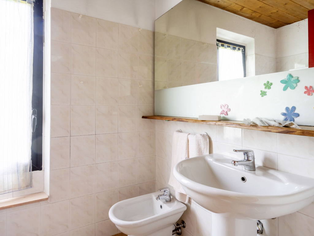 4-Zimmer-Haus, 2 Etagen, ca. 85 m². Zugang von der Hangseite in die 1. Etage: Wohnraum mit Sitzcouch, Pelletkaminofen und Balkonausgang, offene Küche (4 Flammen, Backofen, Mikrowelle, Kühlschrank, Kaffeemaschine) mit Essplatz. Vom Wohnraum Treppe ins Erdgeschoss: Doppelzimmermit kleinem Balkon. Zweibettzimmer (Betten zusammenstellbar). Schlafzimmer mit Etagenbett. Bad/WC. CIR: 012088-CIM-00001