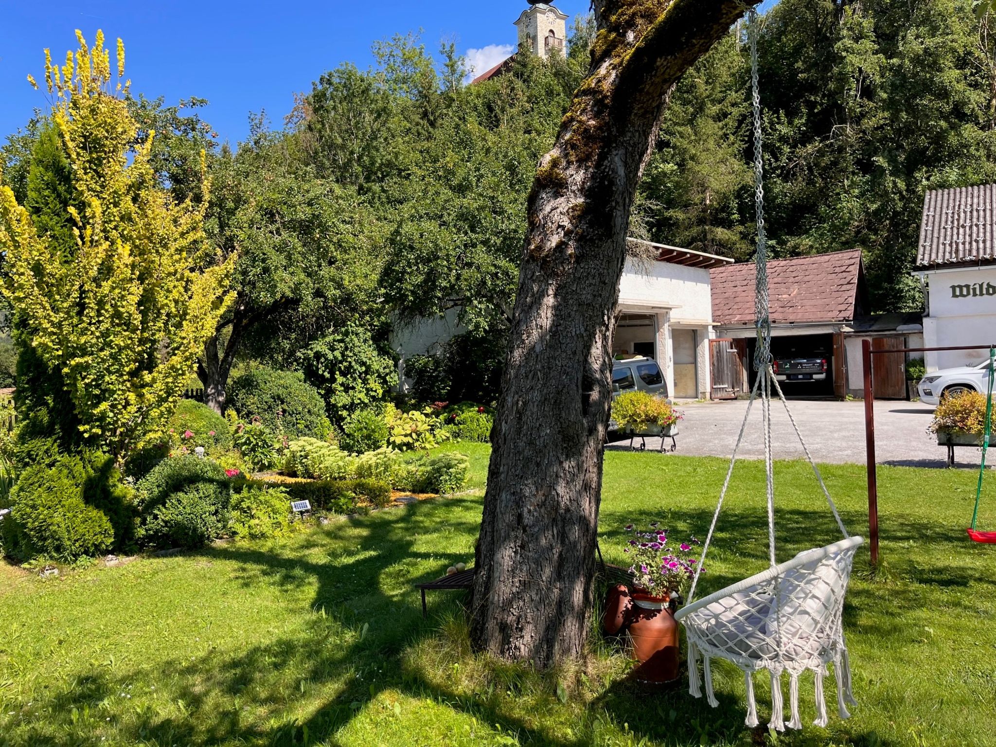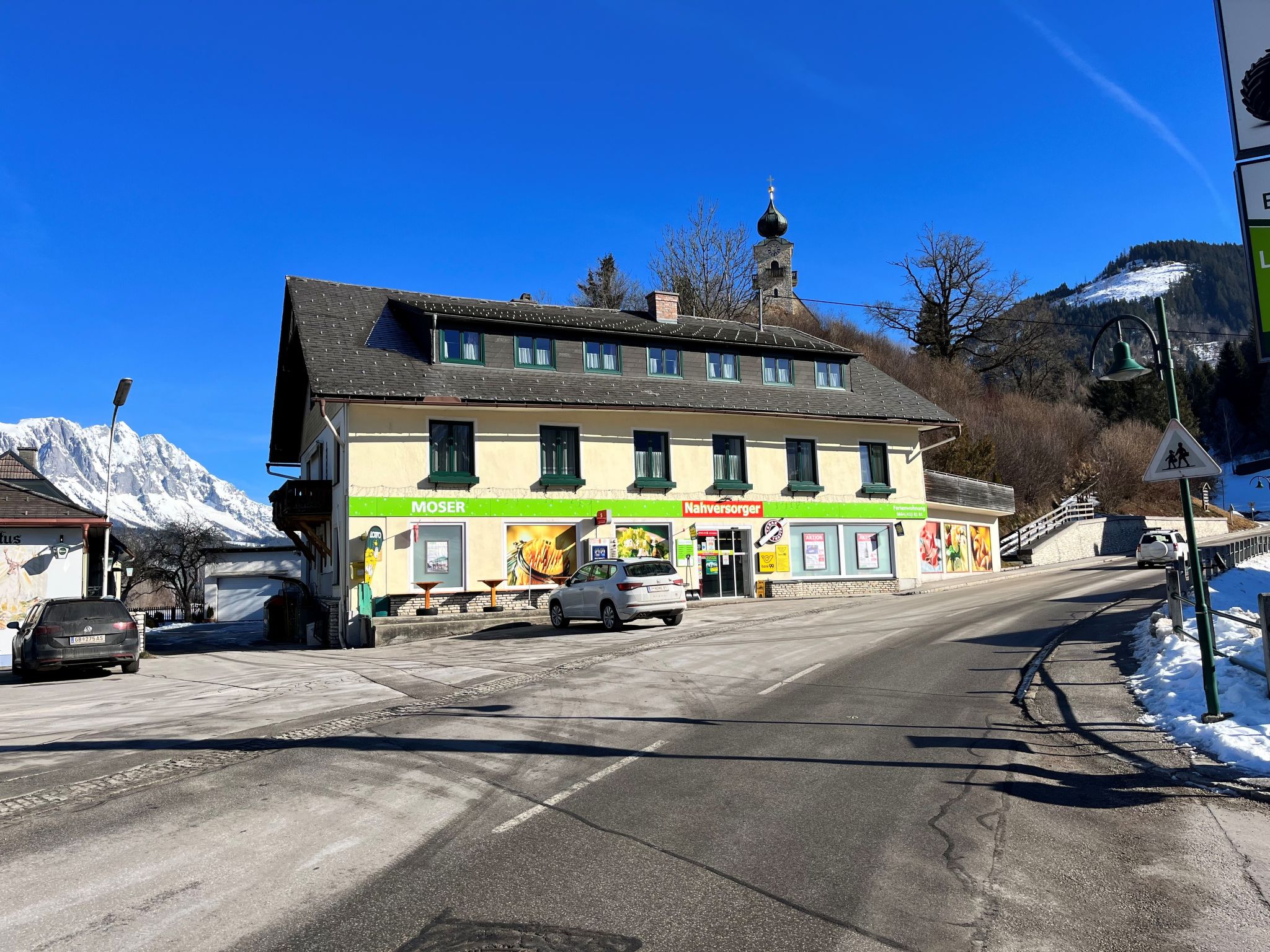Die Ferienwohnung MOSER liegt in der Ortsmitte von Stein an der Enns. Supermarkt im Erdgeschoss, Restaurant im Nachbarhaus. Freibad Gröbming 5 km. Abenteuerpark Gröbming 8 km. Tauern Seilbahn (Haus im Ennstal) 15 km. 2 Parkmöglichkeiten auf dem Grundstück. Ca. 250 m² großes, teils durch Hecke eingefasstes Gartengrundstück mit Wiese, hübscher Bepflanzung und Hängematte zwischen Obstbäumen zur gemeinsamen Benutzung mit den Besitzern, die die 1. Etage bewohnen. Gekiester Freisitz unter Sonnensegel mit Mobiliar für 4 Personen, 2 Liegestühlen, Sonnenschirm und transportablem Grill, ebenfalls zur Mitbenutzung. Rustikale, feriengerechte Einrichtung. Parkett- und Linoleumböden, Teppichboden in einem Schlafzimmer. 2x Sat-TV. Internetzugang (WLAN, inklusive). Zentralheizung über Fernwärme. Hinweis: Rauchen ist in der Wohnung nicht gestattet. Winter-Infos: Skigebiet Galsterberg 10 km, Skigebiet Hauser Kaibling 14 km. Ski und Skischuhe können im Heizraum abgestellt werden.