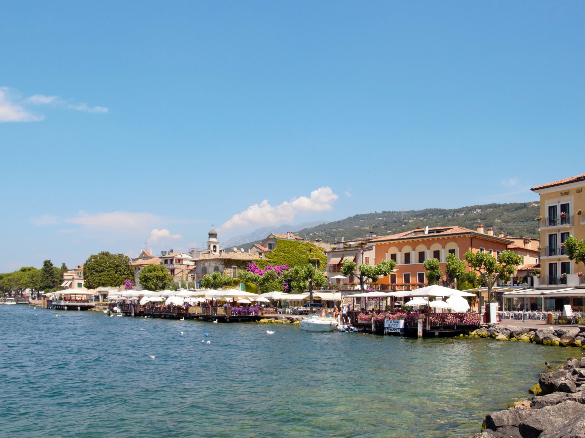 Residenz "Gianni", auf 2 Stockwerken. 8 Wohnungen in der Residenz. 3 km vom Zentrum von Torri del Benaco, erhöhte Lage am Hang, 800 m vom See. Zur Mitbenutzung: gepflegter Garten, Schwimmbad (9 x 4 m, 150 cm tief, saisonale Verfügbarkeit: 15.Mai.-30.Sep.). Aussendusche, Terrasse, Grill. Im Hause: Waschmaschine (zur Mitbenutzung). Parkplatz (beschränkte Anzahl) auf dem Grundstück. Einkaufsgeschäft 3 km, Kieselstrand 800 m. Golfplatz (18 Loch) 8 km. Nahe gelegene Sehenswürdigkeiten: Malcesine 20 km, Verona 48 km. Wandergebiete: Monte Baldo 35 km. Der Besitzer akzeptiert keine Jugendgruppen. Die Residenz wird durch elektrische Tore geschlossen.