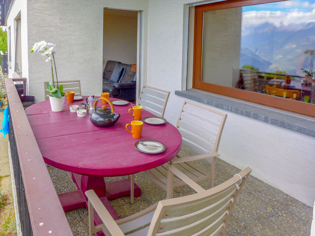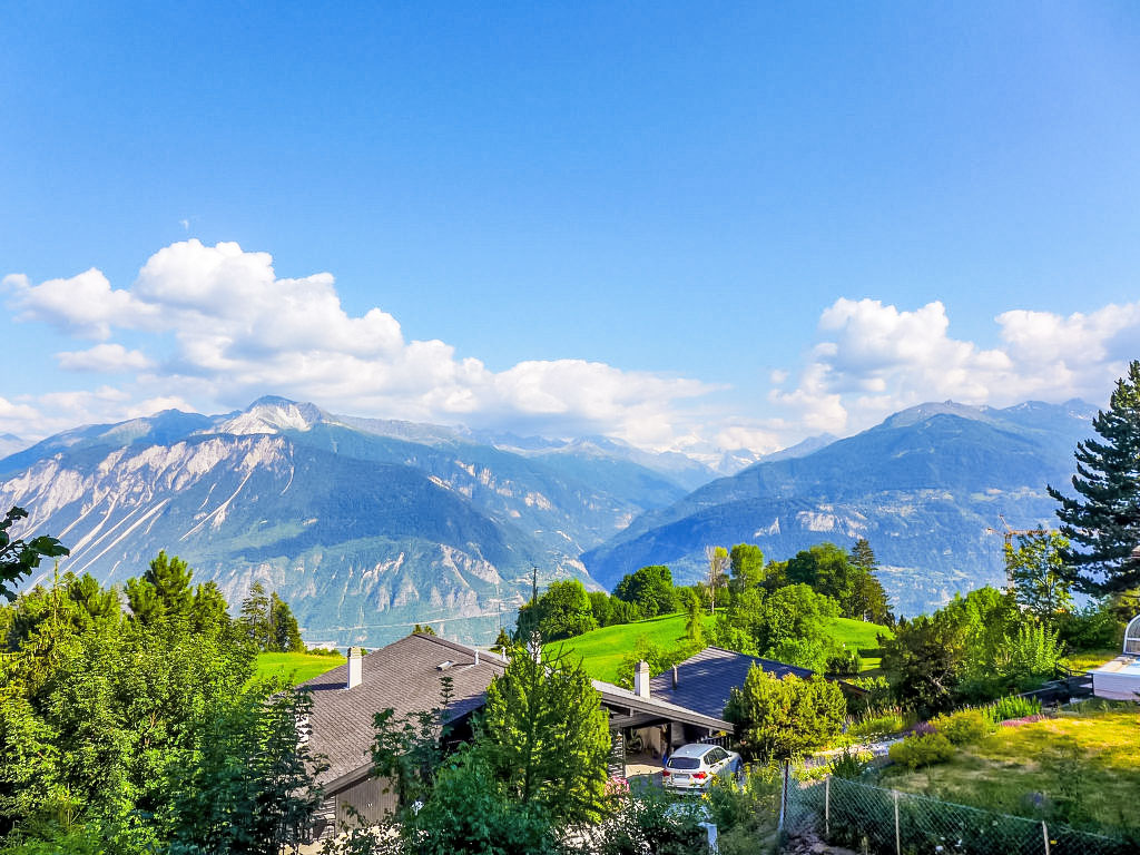 Chalet "Aglaia", auf 3 Stockwerken, einseitig angebaut. Unterhalb von Montana, ausserhalb des Ortes, 3 km vom Zentrum von Montana, ruhige Lage, in einer Sackgasse. Zur Alleinbenutzung: Garten. Steile, schmale Zufahrt. Im Winter bitte Schneeketten mitbringen, im Winter 4x4 empfohlen. Treppenweg (33 Stufen) bis zum Haus. Bushaltestelle "Pradouvan" 700 m. Skisportanlagen 2.2 km. Bitte beachten: Fahrzeug empfohlen.
