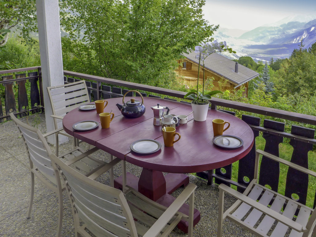 5-Zimmer-Chalet 220 m2 auf 3 Stockwerken. Rustikal eingerichtet: Wohn-/Esszimmer mit offenem Kamin und Kabel-TV. Ausgang zum Balkon, Richtung Süden. Küche (Backofen, Geschirrspüler, 4 Glaskeramikherd Platten, Toaster, Wasserkocher, Mikrowelle, elektrische Kaffeemaschine, Racletteofen, Fondue Set (Käse)). Ausgang zur Terrasse. Unteres Geschoss: 1 Zimmer mit 2 Betten und sep. WC mit Dusche. Obergeschoss: 2 abgeschrägte Zimmer, Richtung Süden, jedes Zimmer mit 1 franz. Bett (160 cm, Länge 200 cm). 1 abgeschrägtes Zimmer, Richtung Norden mit 1 franz. Bett (140 cm, Länge 200 cm). Bad/WC, Dusche/WC. Balkonmöbel. Sehr schöne Sicht auf die Berge. Zur Verfügung: Waschmaschine, Babybett bis 3 Jahre, Haartrockner. Internet (Wireless LAN, gratis). Garage (2 Autos) beim Haus, Höhe 189 cm, Breite 230 cm. Babybett ohne Bettwäsche und ohne Decke.