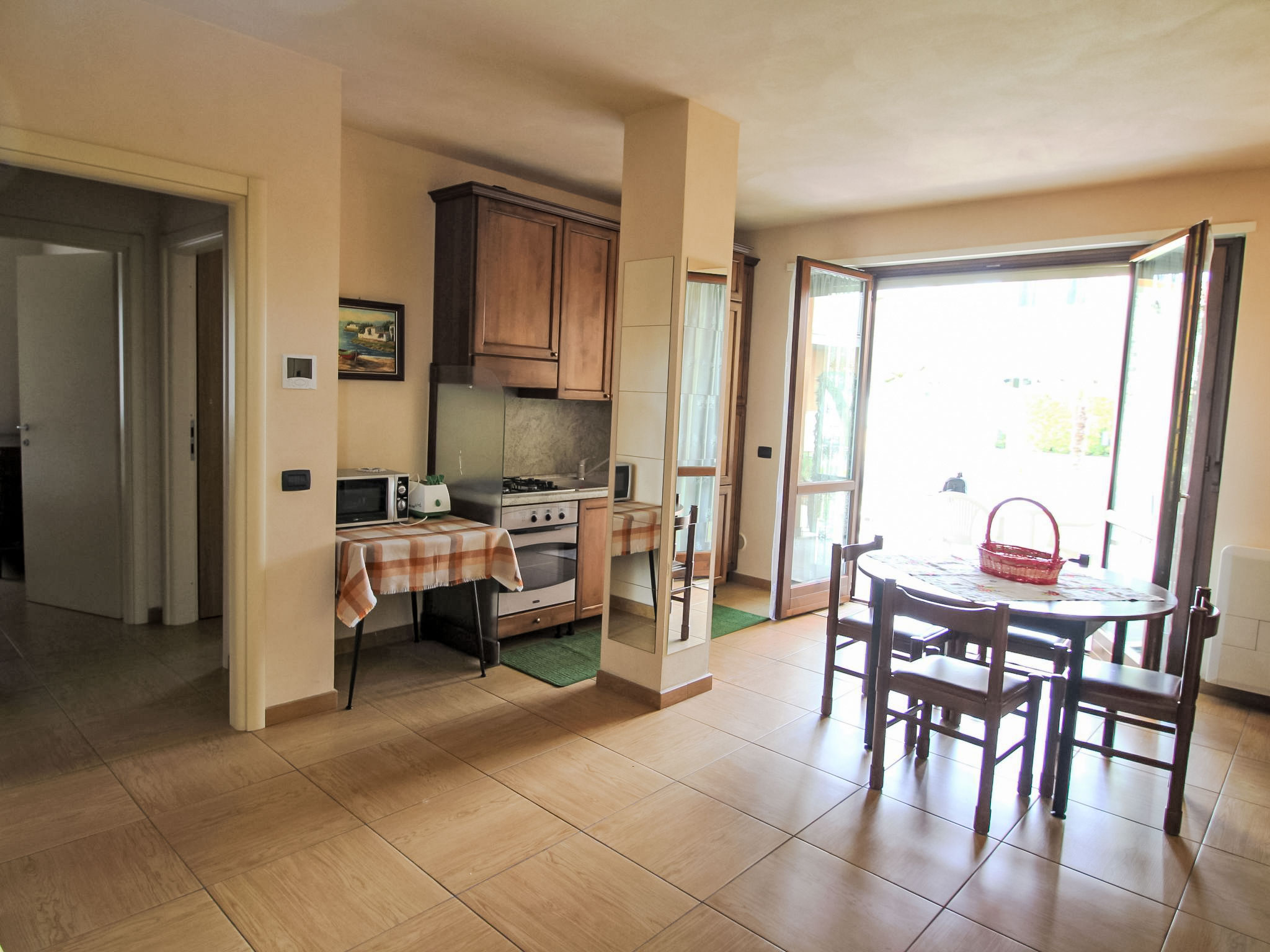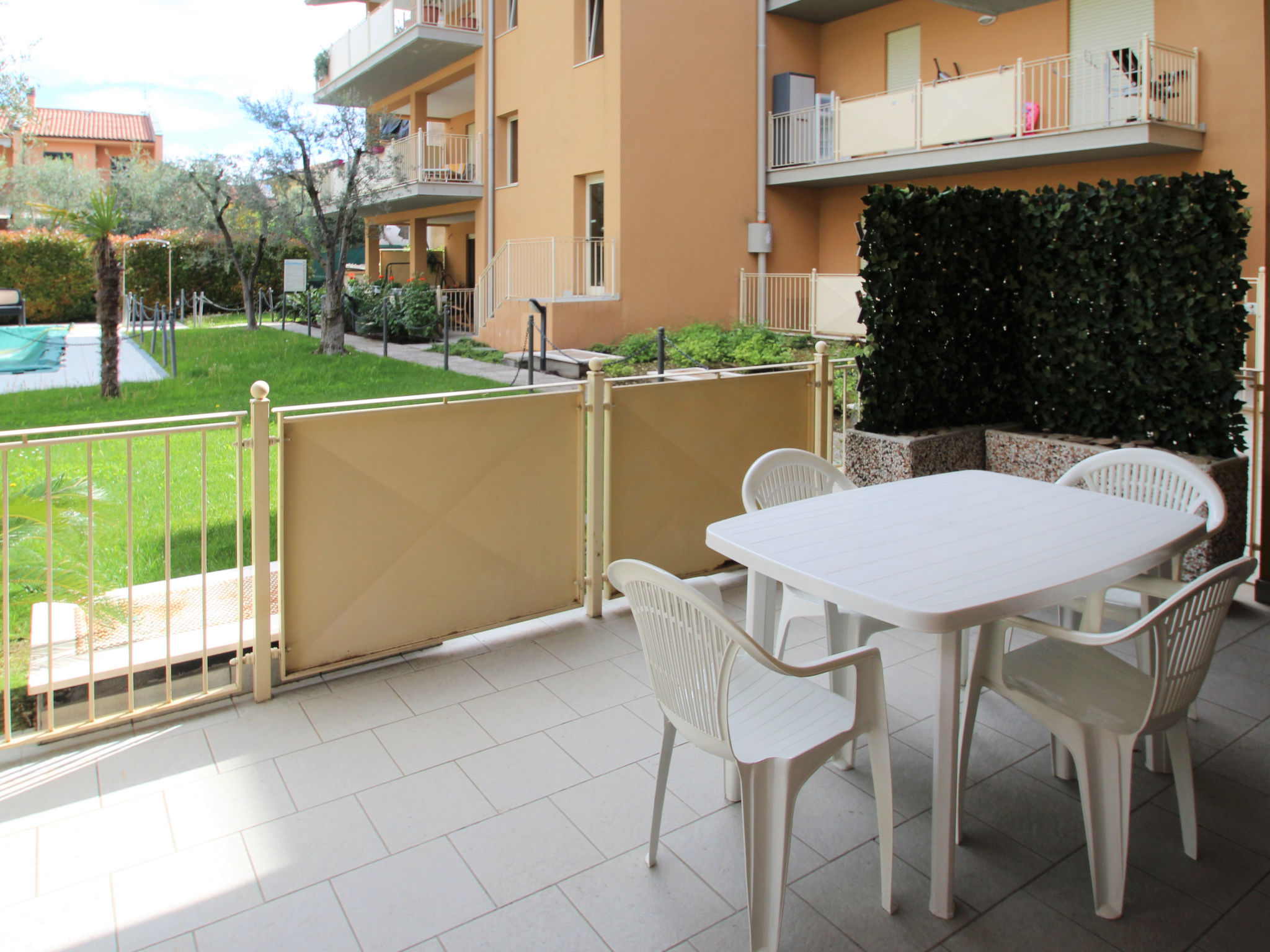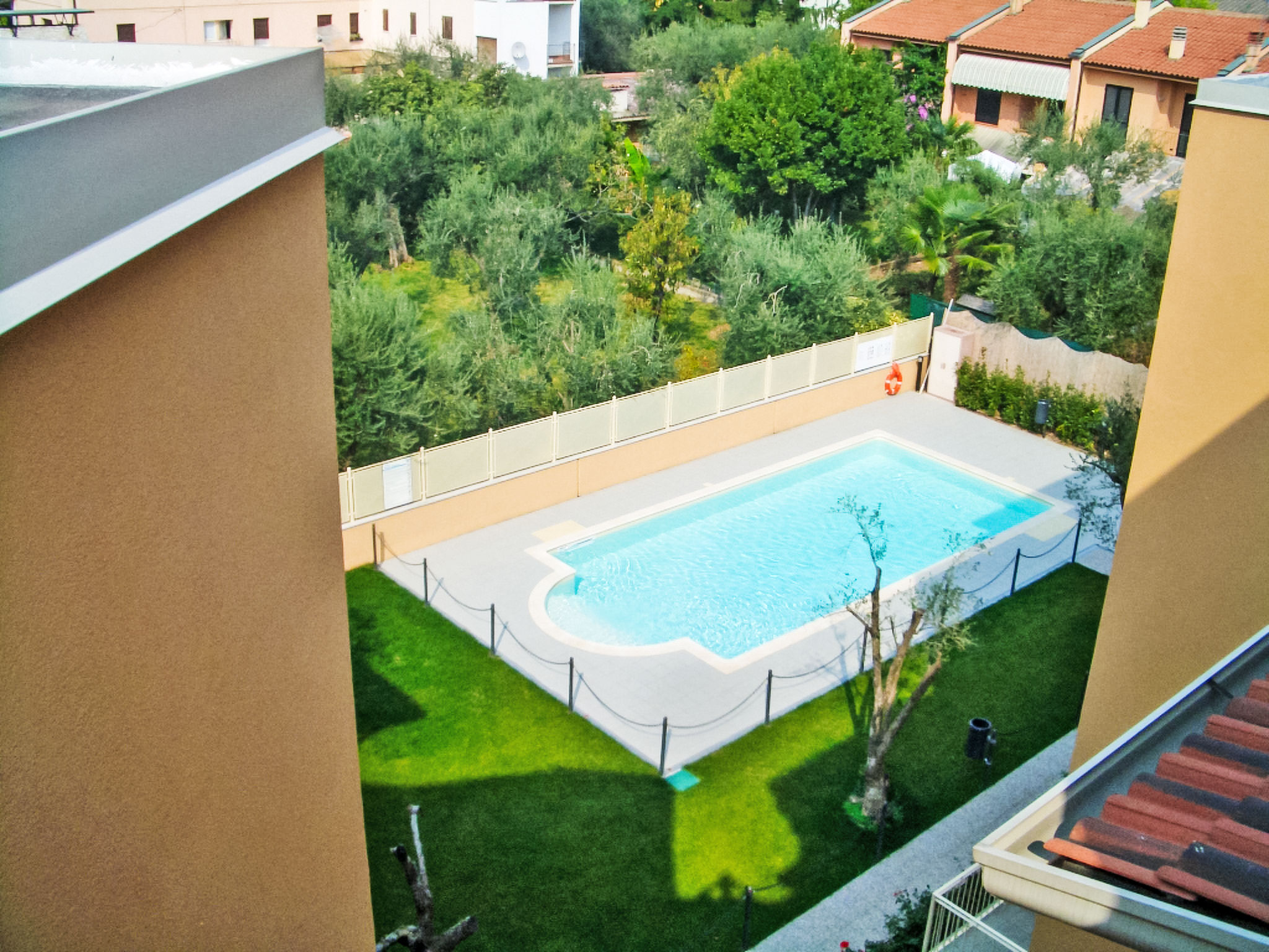 Residenz "Il Piccolo", auf 3 Stockwerken, Baujahr 2008. 250 m vom See. Zur Mitbenutzung: Grundstück (eingezäunt), Schwimmbad (12 x 6 m, 130 cm tief, saisonale Verfügbarkeit: 15.Mai.-30.Sep.). Aussendusche. Im Hause: Solarium, Fahrstuhl. Zufahrt bis zum Haus. Öffentliche Parkplätze auf der Strasse. Supermarkt, Restaurant, Bar 200 m, Bushaltestelle 500 m, Fähre "Maderno - Torri del Benaco" 1 km, Steinstrand 250 m. Tennis 250 m, Reitstall 2 km, Radweg 300 m. Nahe gelegene Sehenswürdigkeiten: Il Vittoriale - Gardone Riviera 4 km, Salò 9 km.