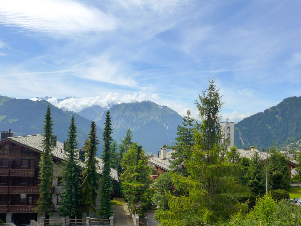 "Arvine combles", 3-Zimmer-Attikawohnung 60 m2 im 2. Stock. Hell, einfach und komfortabel eingerichtet: offenes Wohn-/Esszimmer mit Essecke, TV, DVD und Heizofen. Ausgang zum Balkon. 1 Zimmer mit 1 Doppelbett (2 x 90 cm, Länge 200 cm). Ausgang zum Balkon. 1 Zimmer mit 1 Doppelbett (2 x 90 cm, Länge 200 cm). Kleine, offene Küche (4 Kochplatten, Backofen, Toaster, Wasserkocher, Mikrowelle, Tiefkühler, elektrische Kaffeemaschine, Kapseln für die Kaffeemaschine (König (Migros)) extra, Racletteofen, Fondue Set (Käse)) mit Bar. Sep. WC, Bad oder Dusche. Ölheizung. Grosser Balkon. Balkonmöbel, Gartengrill. Sehr schöne Sicht auf die Berge, die Landschaft und die Ortschaft. Zur Verfügung: Haartrockner. Internet (Wireless LAN, gratis). Garage Nr. Privé (1 Auto) in 50 m. Bitte beachten: Nichtraucher-Unterkunft. 1 Haustier/Hund erlaubt. Kein Fahrstuhl.