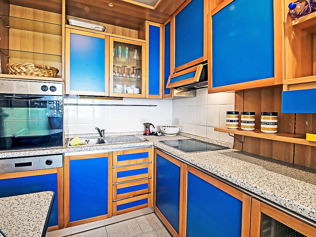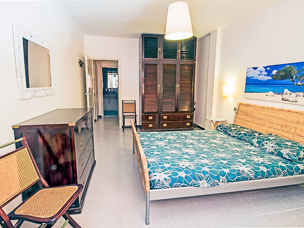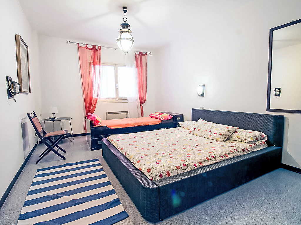 4-Zimmer-Wohnung 90 m2, im Erdgeschoss. Geschmackvoll eingerichtet: grosses Wohn-/Esszimmer mit Panoramafenster mit TV. Ausgang zur Terrasse. 1 Doppelzimmer mit 1 Bett und 1 Doppelbett. 1 Zimmer mit 1 franz. Bett. 1 kleines Zimmer mit 1 Bett (130 cm). Kleine Küche (Backofen, Geschirrspüler, 4 Induktionskochplatten, Mikrowelle). 2 Bäder. Terrasse. Sicht auf das Meer. Zur Verfügung: Waschmaschine.