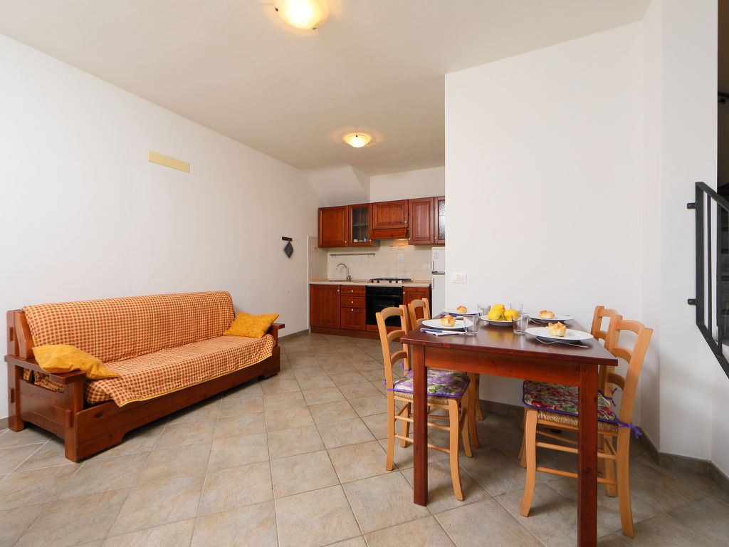 "Avocado", 2-Zimmer-Wohnung 60 m2 auf 2 Stockwerken. Einfach und gemütlich eingerichtet: Wohn-/Esszimmer mit 1 Doppeldiwanbett. Ausgang zur Terrasse. Kochnische (4 Kochplatten, Backofen, Tiefkühler). Sep. WC. Obergeschoss: 1 Doppelzimmer. Ausgang zur Terrasse. Dusche/Bidet/WC. Terrasse teilweise überdacht. Balkonmöbel, Gartengrill (mobil). Zur Verfügung: Waschmaschine. IUN:Q2807