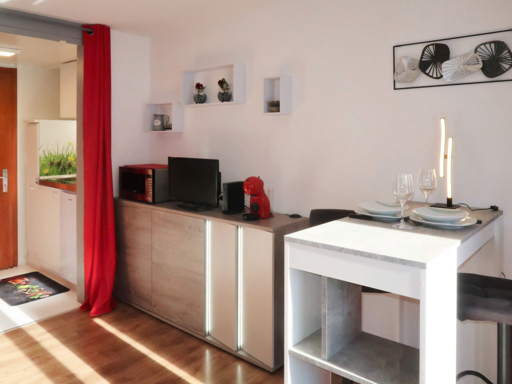 "Beau Séjour 26", 1-Zimmer-Studio 20 m2 im 4. Stock, Südlage. Vollständig renoviert im Jahre 2021, komfortabel und schön eingerichtet: Wohn-/Schlafzimmer mit 1 Doppeldiwanbett (140 cm, Länge 200 cm), Kabel-TV. Offene Küche im Eingang (2 Glaskeramikherd Platten, elektrische Kaffeemaschine, Kapseln für die Kaffeemaschine (Dolce Gusto) extra, Racletteofen, Kombinationsmikrowelle, Fondue Set (Käse)). Dusche/WC. Balkon, Südlage. Balkonmöbel. Sicht auf die Berge und die Ortschaft. Zur Verfügung: Internet (Wireless LAN, gratis). Bitte beachten: Nichtraucher-Unterkunft. 1 Haustier/Hund erlaubt.