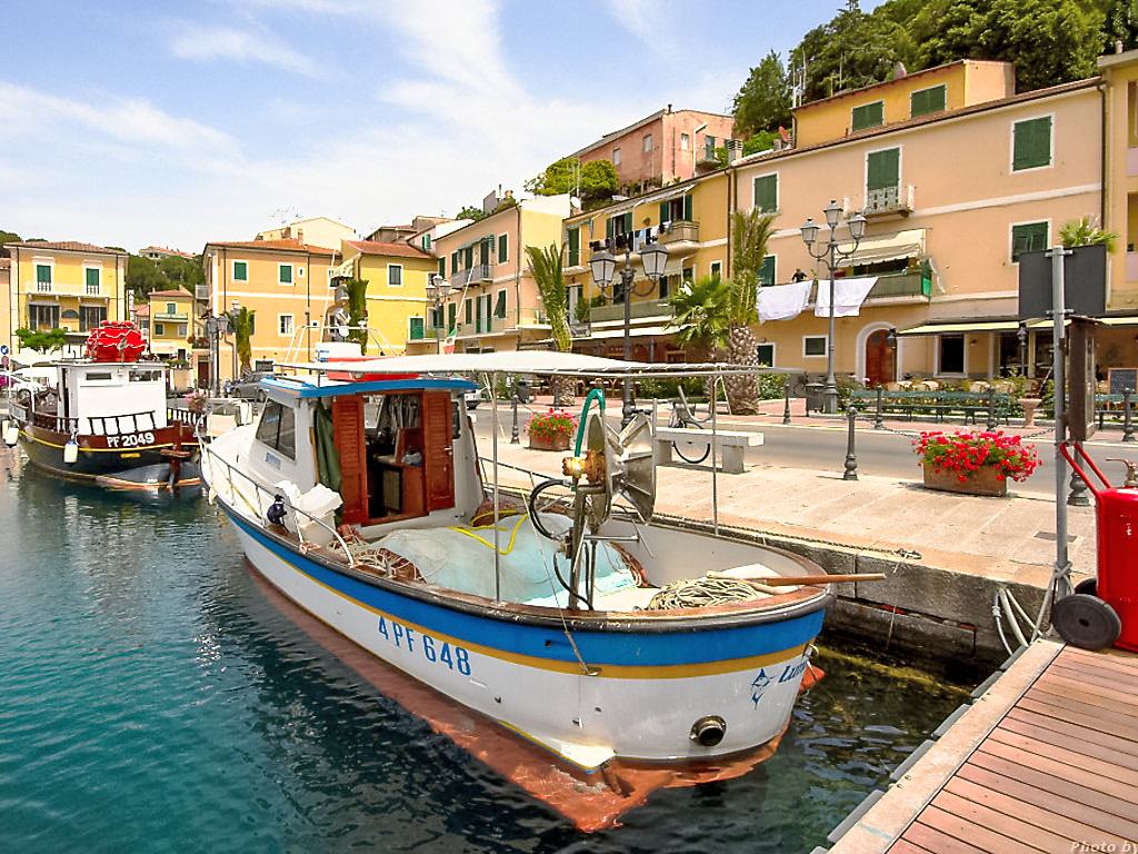 Nahe dem Zentrum von Porto Azzurro, dieses Haus befindet sich an einer Wohnstrasse, die Ruhe und Privatsphäre gewährleistet. Reihenhaus "Casina". Im Ort Porto Azzurro, ruhige Lage, 500 m vom Meer. Parkplatz beim Haus. Lebensmittelgeschäft, Supermarkt, Restaurant, Fußgängerzone 500 m, Zentrum zu Fuss in 5 Minuten erreichbar, Sandstrand "Barbarossa" 800 m. Golfplatz 10 km, Reitstall 3 km. In weniger als 10 Minuten erreichen Sie zu Fuss den «Barbarossa»-Strand oder die Promenade von Portoazzurro, wo sich einzigartige und reizende Läden und Restaurants befinden.